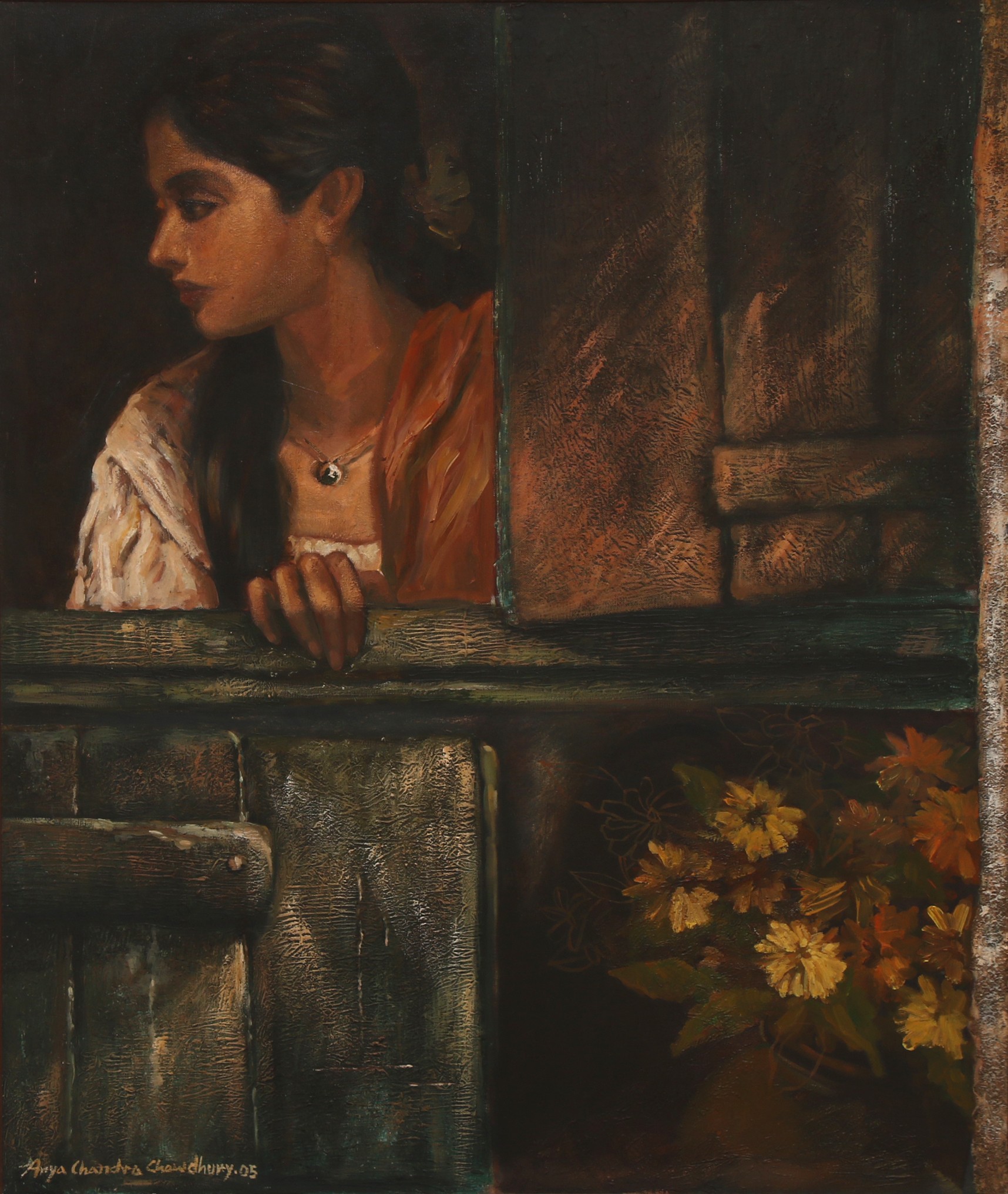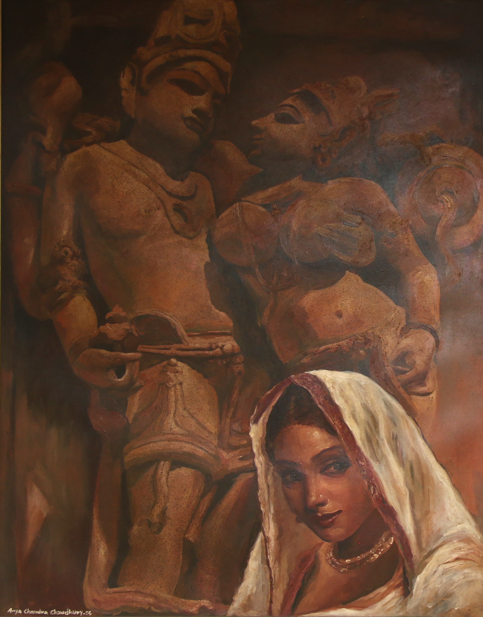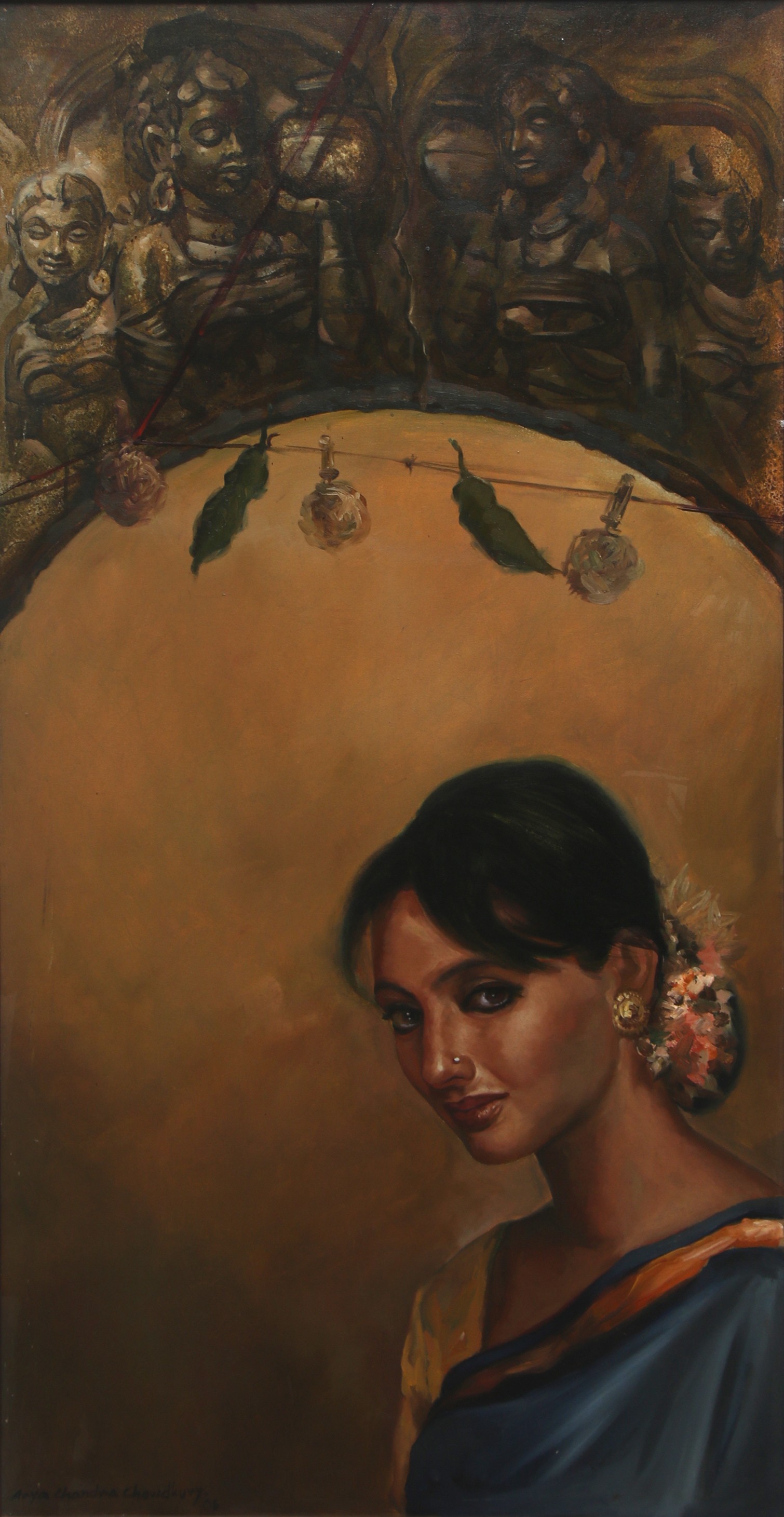 Arya Chandra Chowdhury hails from Kolkata and is an Indian artist. He studied from Govt. College of Arts & Crafts, Kolkata. Chowdhury is known for beautifully presenting the human form in his paintings. His works features detailed brushwork and brilliant use of colour, light, and shade. His paintings include scenes from mythology and contemporary life, capturing the beauty and complexity of men and women. He mainly works with mix media on figurative art especially, focusing on the female body. He uses oils, acrylics, watercolours and mix media for his paintings.