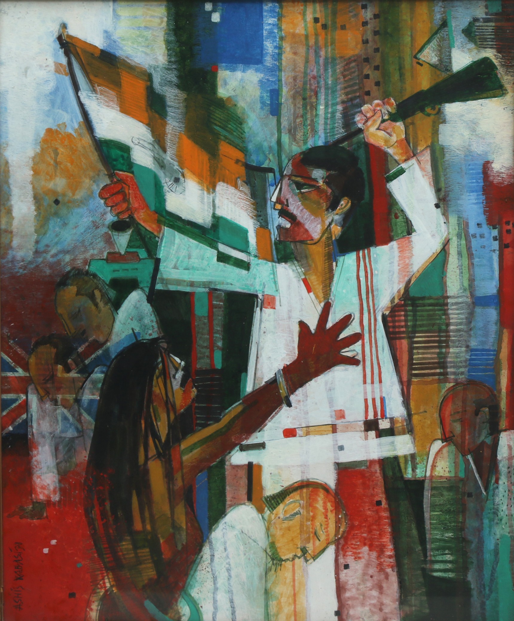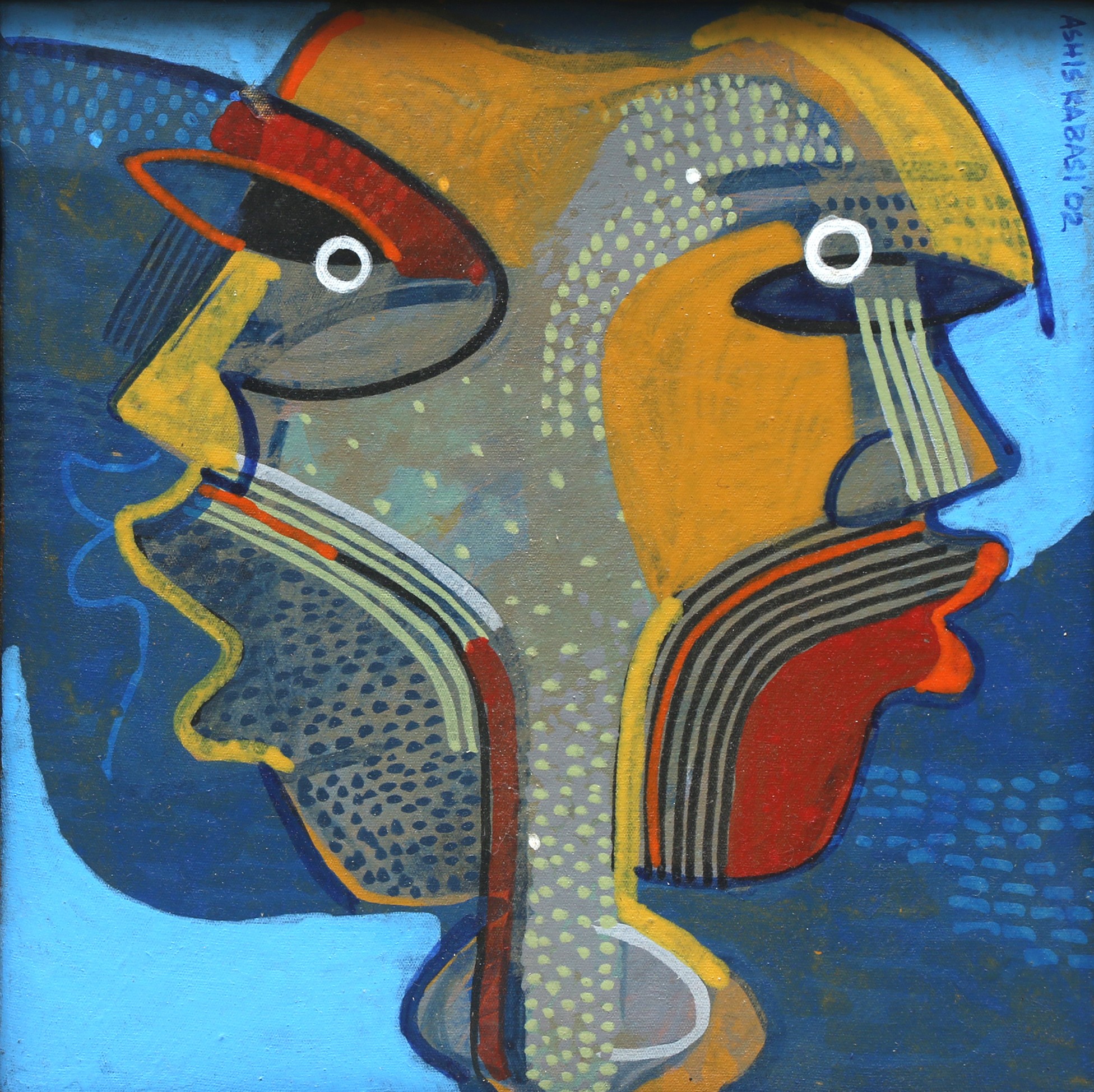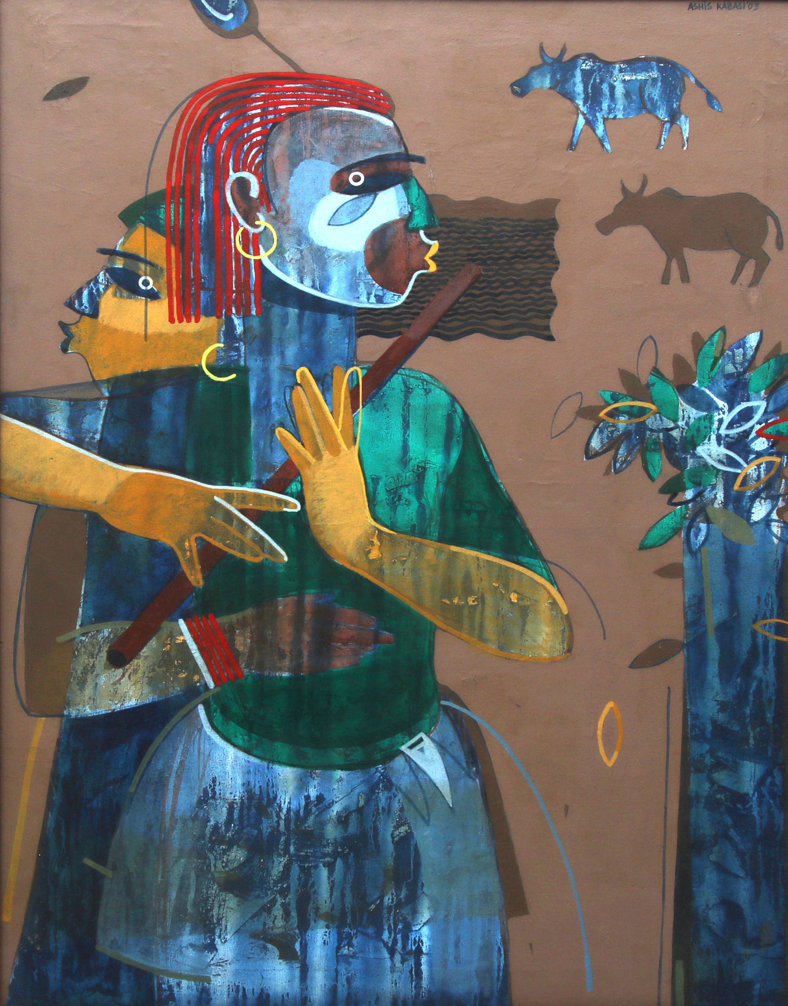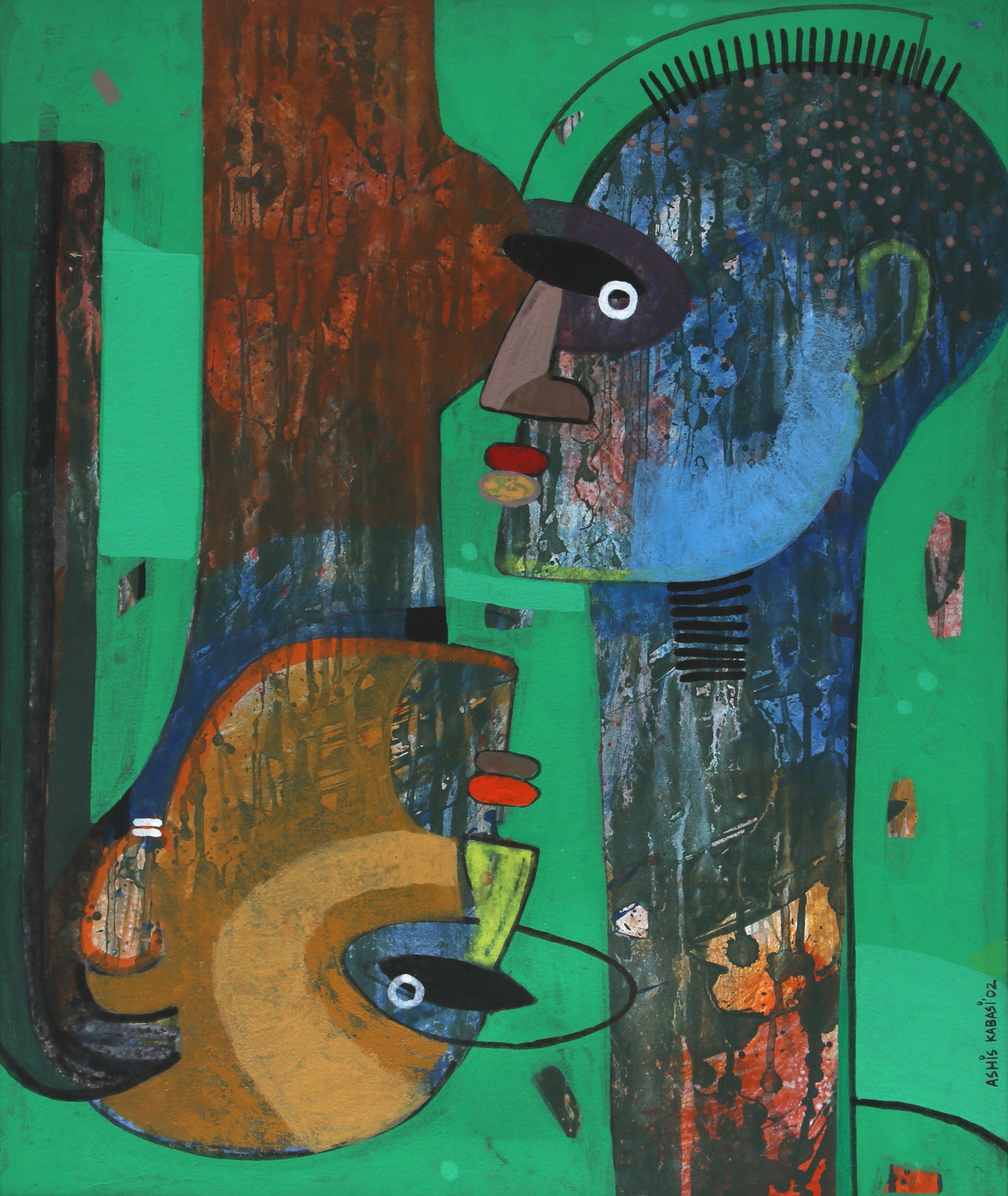His artistic journey began early in his life, influenced by the rich cultural heritage of Kolkata. His work often explores the complexities of human emotions and the ever-changing nature of contemporary life. Kabasi's paintings are characterized by their expressive brushwork and a keen sense of movement with some touch of sculptural forms. He often delves into themes of identity, societal changes, and personal experiences, bringing a sense of realism and depth to his creations.