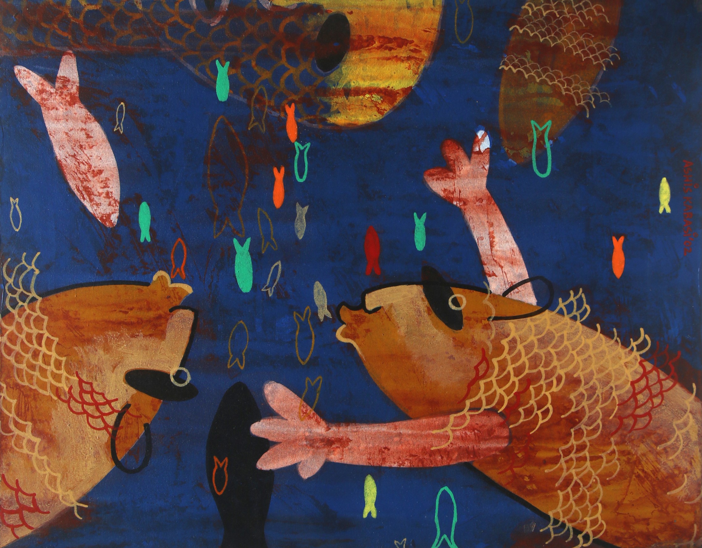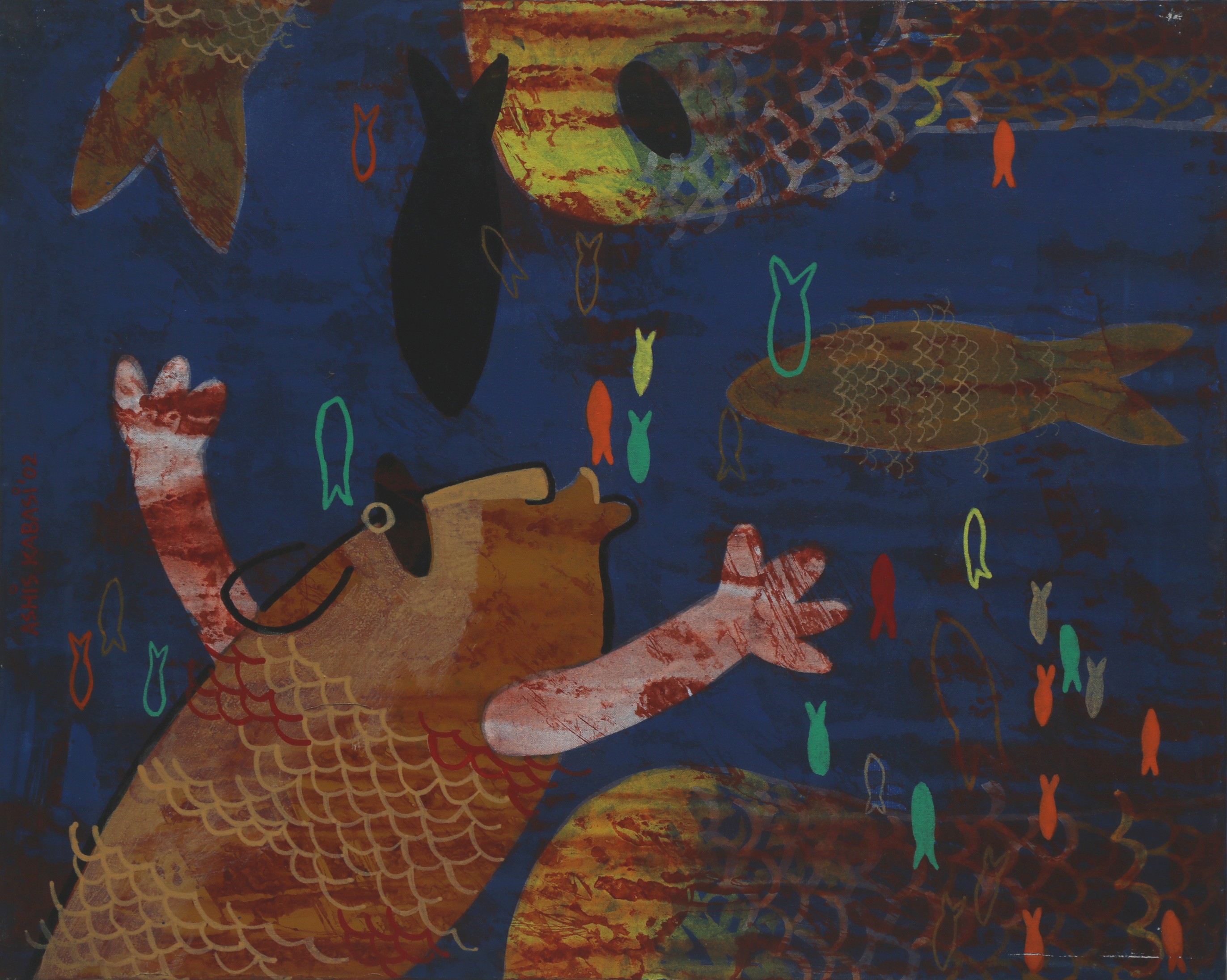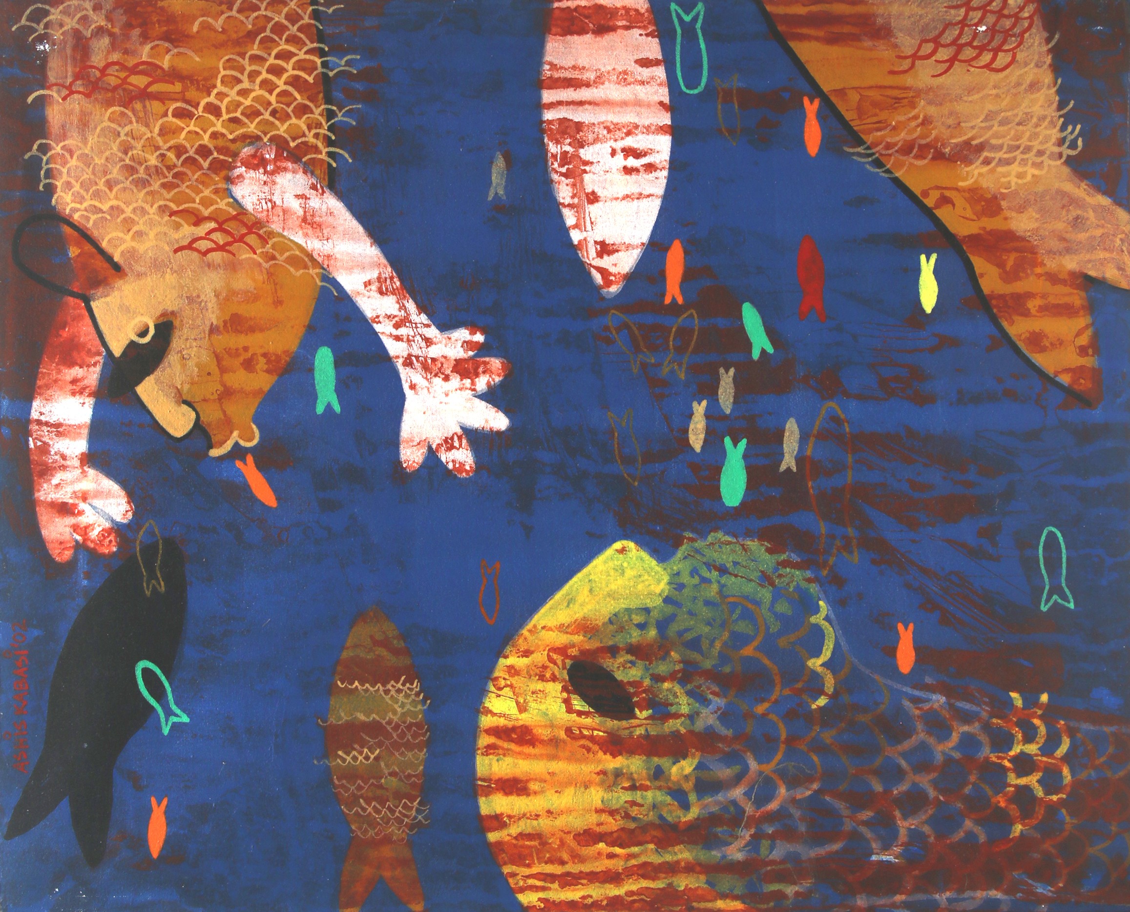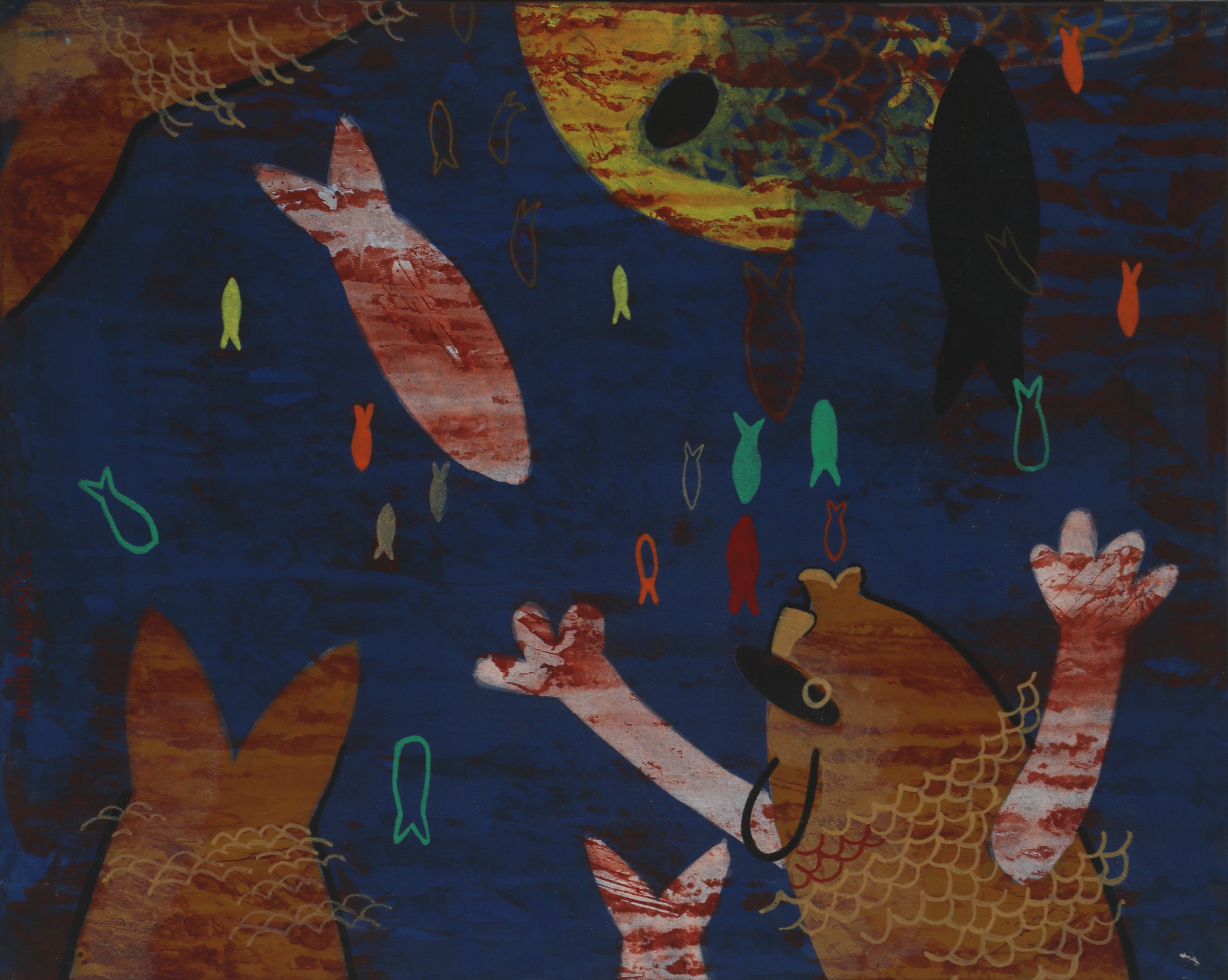 His artistic journey began early in his life, influenced by the rich cultural heritage of Kolkata. His work often explores the complexities of human emotions and the ever-changing nature of contemporary life. Kabasi's paintings are characterized by their expressive brushwork and a keen sense of movement with some touch of sculptural forms. He often delves into themes of identity, societal changes, and personal experiences, bringing a sense of realism and depth to his creations.