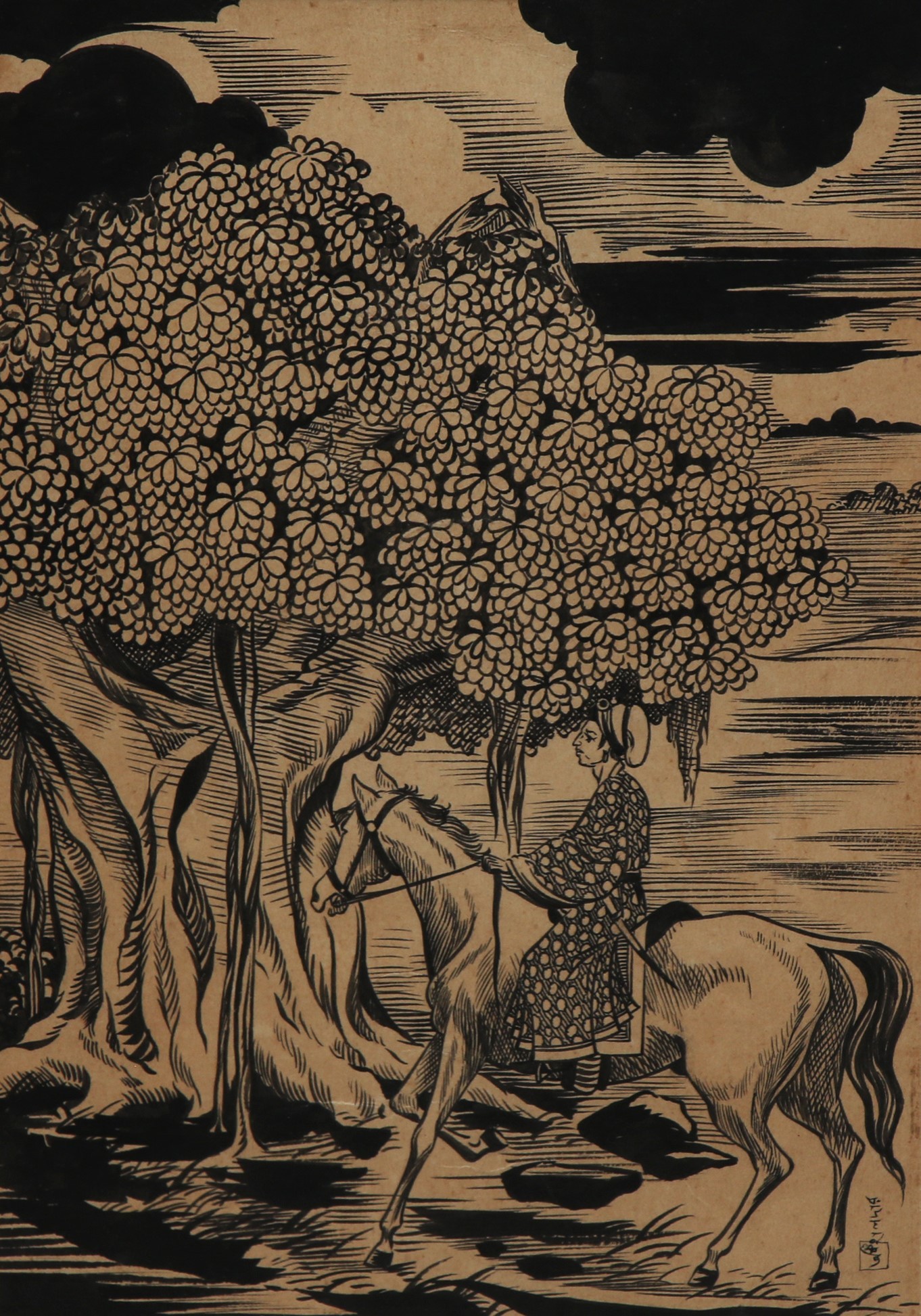 Asit Kumar Haldar was born in West Bengal, 1890. A grand-nephew of Rabindranath Tagore, he trained later under Abanindranath Tagore at the Government School of Art, Calcutta. He was an Indian painter of Bengal school of art. Haldar inspired by Ajanta murals, also done the commissioned imitated painting of Ajanta caves. He painted on mythological stories; created 32 painting based on Buddha, 30 canvases depicted episodes from Indian history, and explored literary themes in art. He showed how versatile he was by easily working with different materials, like his unique 'lacit' or lacquered technique. He also made illustrations for Omar Khayyam's verses. His artwork had a spiritual touch that was admired by both the public and critics.