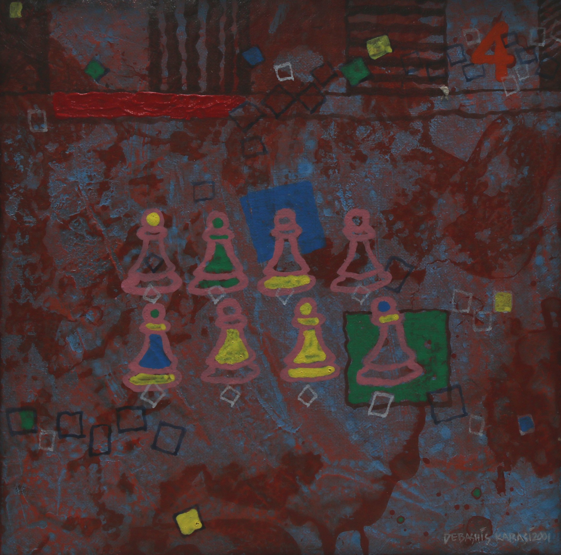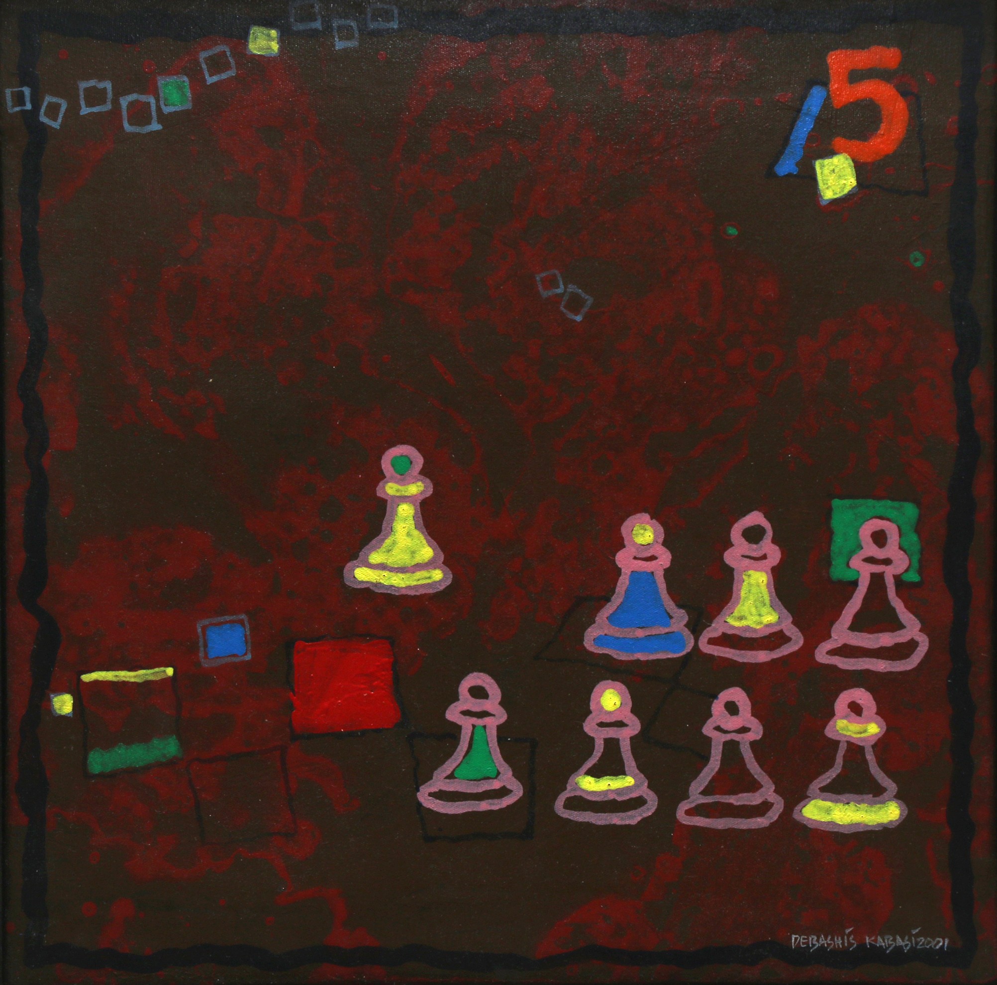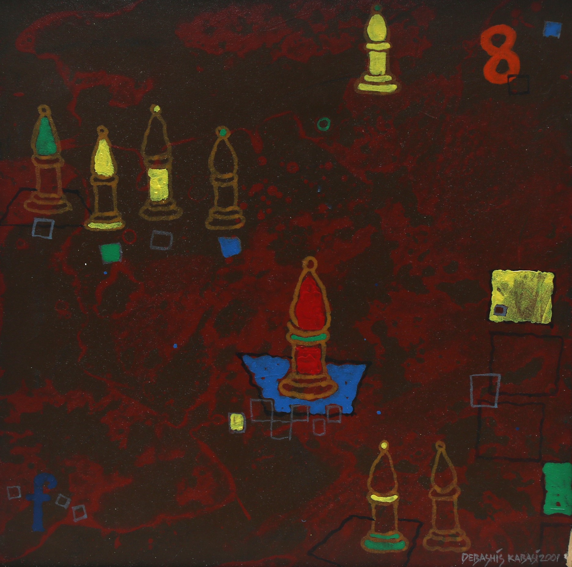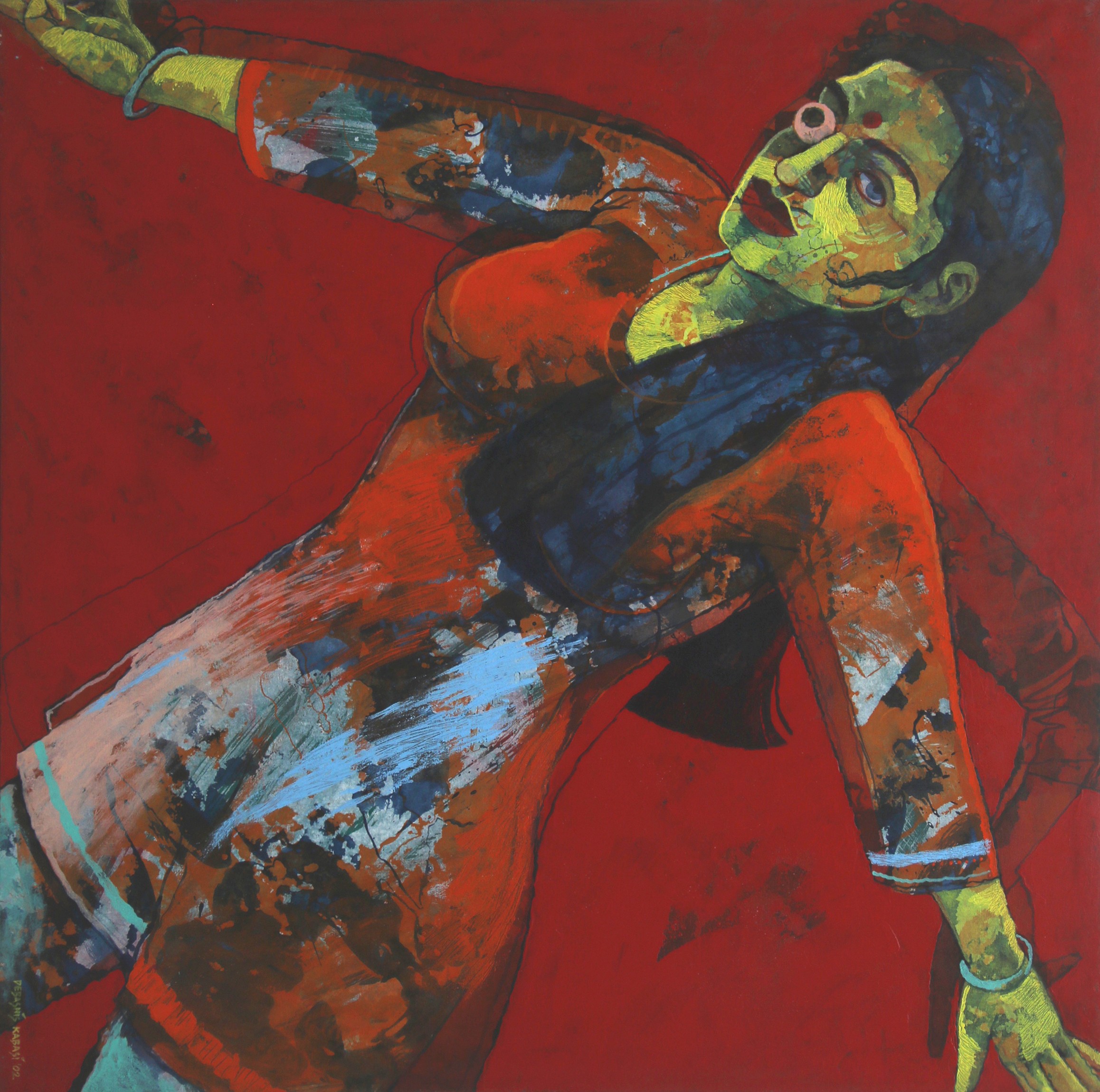 After he finishes painting his colourful works, Kabasi adds dark, shaky lines around the figures. It's like a child altering an adult's drawing. This mix of styles is a key part of his art. He starts with playful doodles and then refines them into clear shapes and outlines. The contrasting styles come together to make the art more balanced. The initial doodles often remain visible within the final piece, creating an abstract layer that overlays the figurative scene. He has exhibited his work in many solo and group shows in India and abroad.