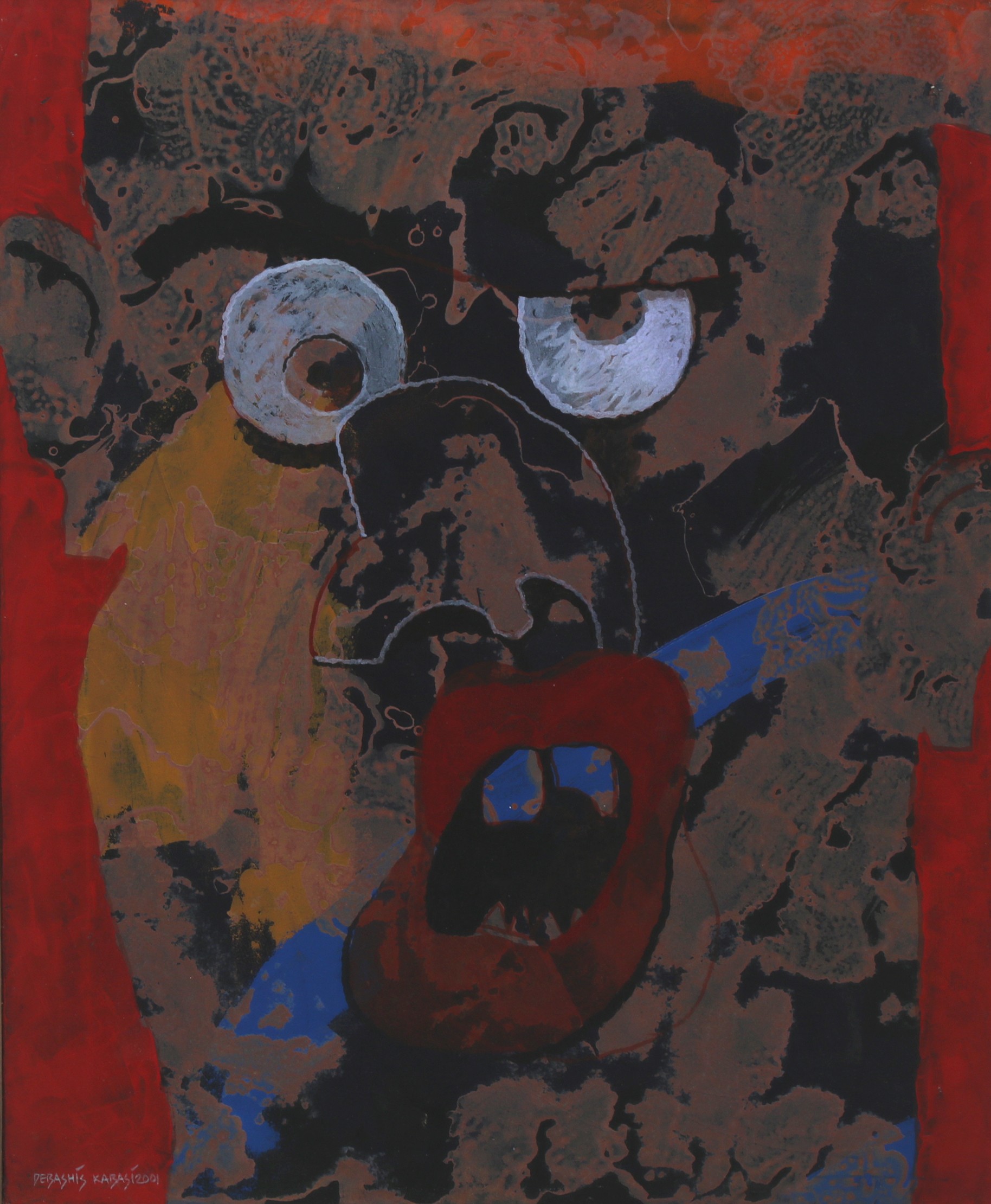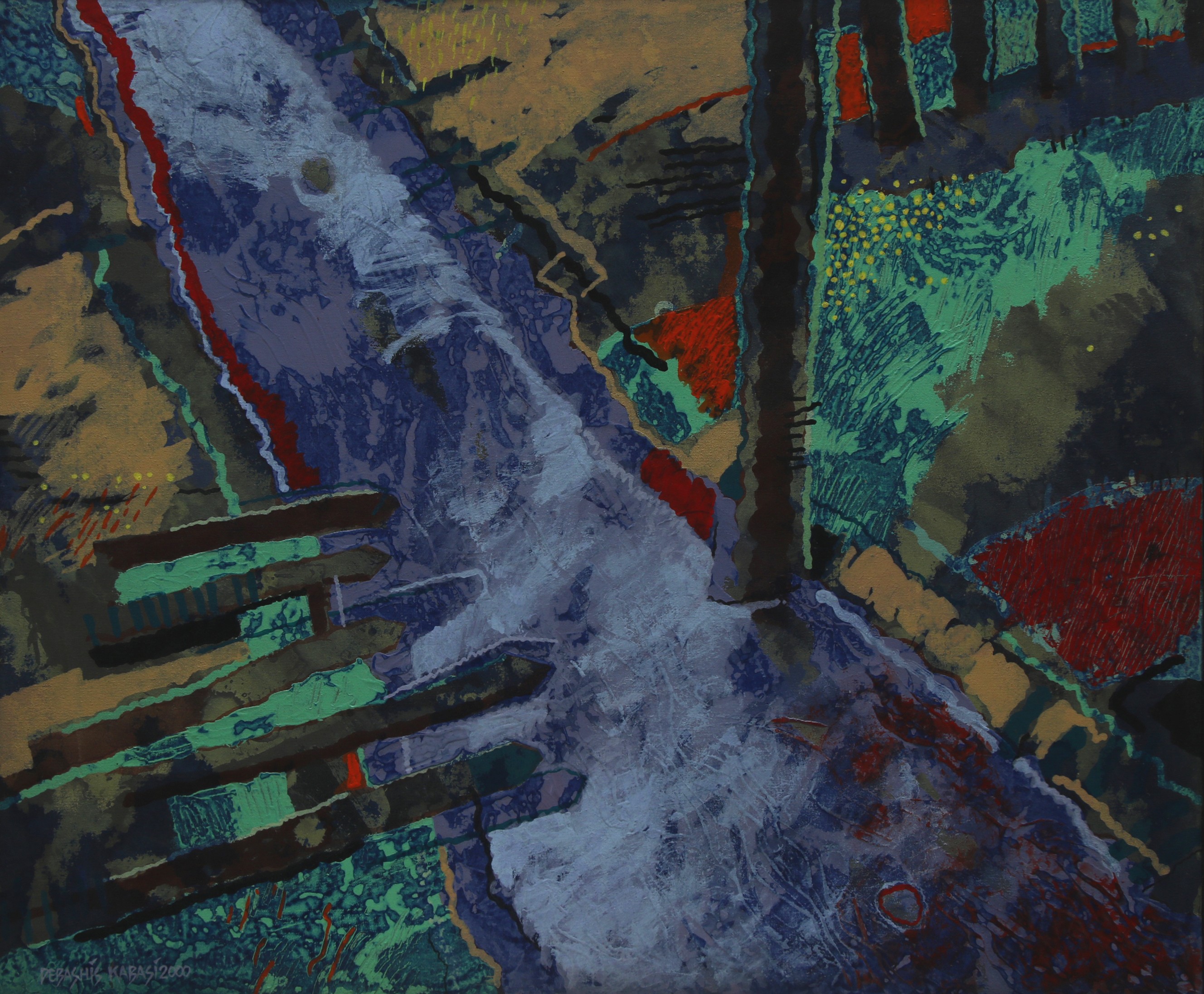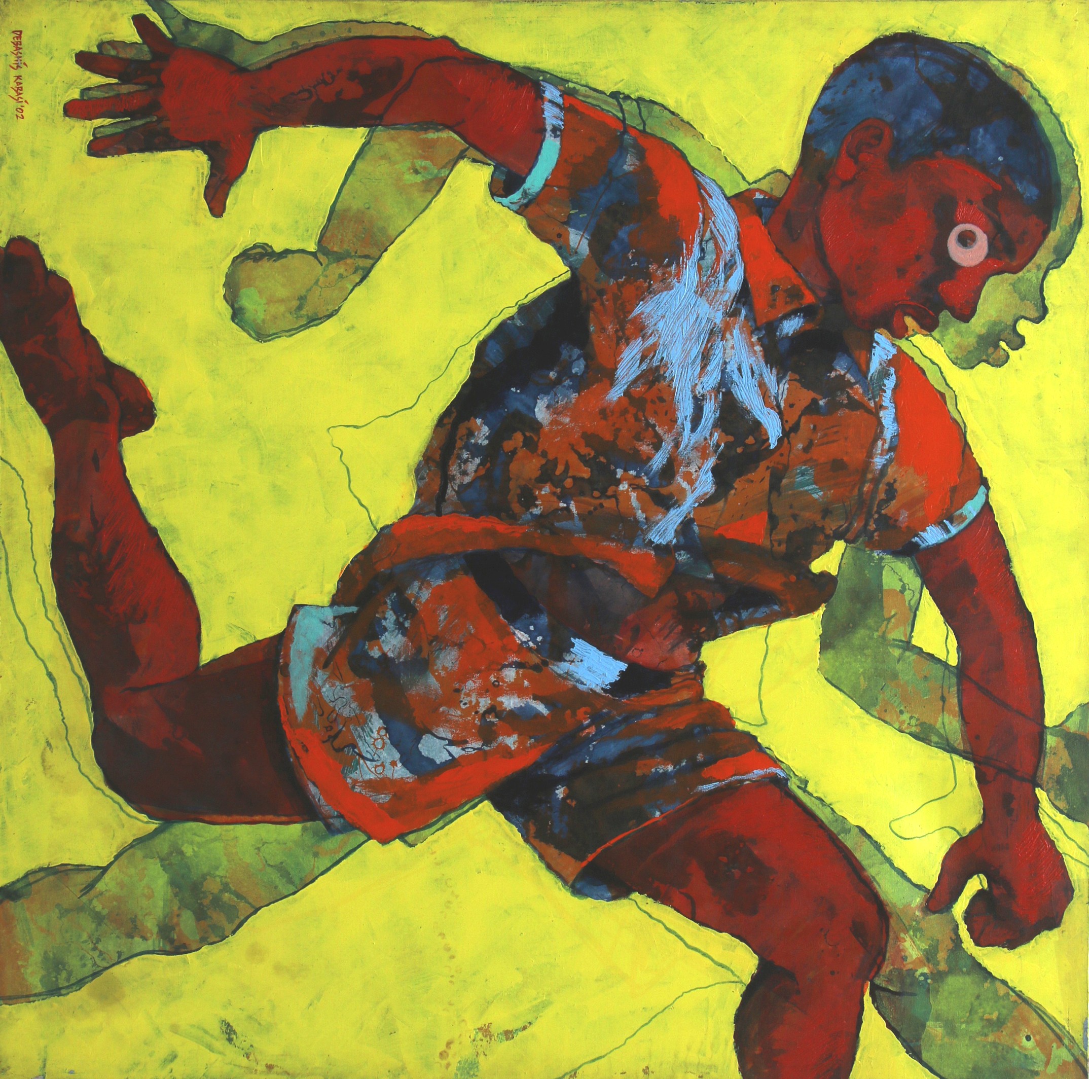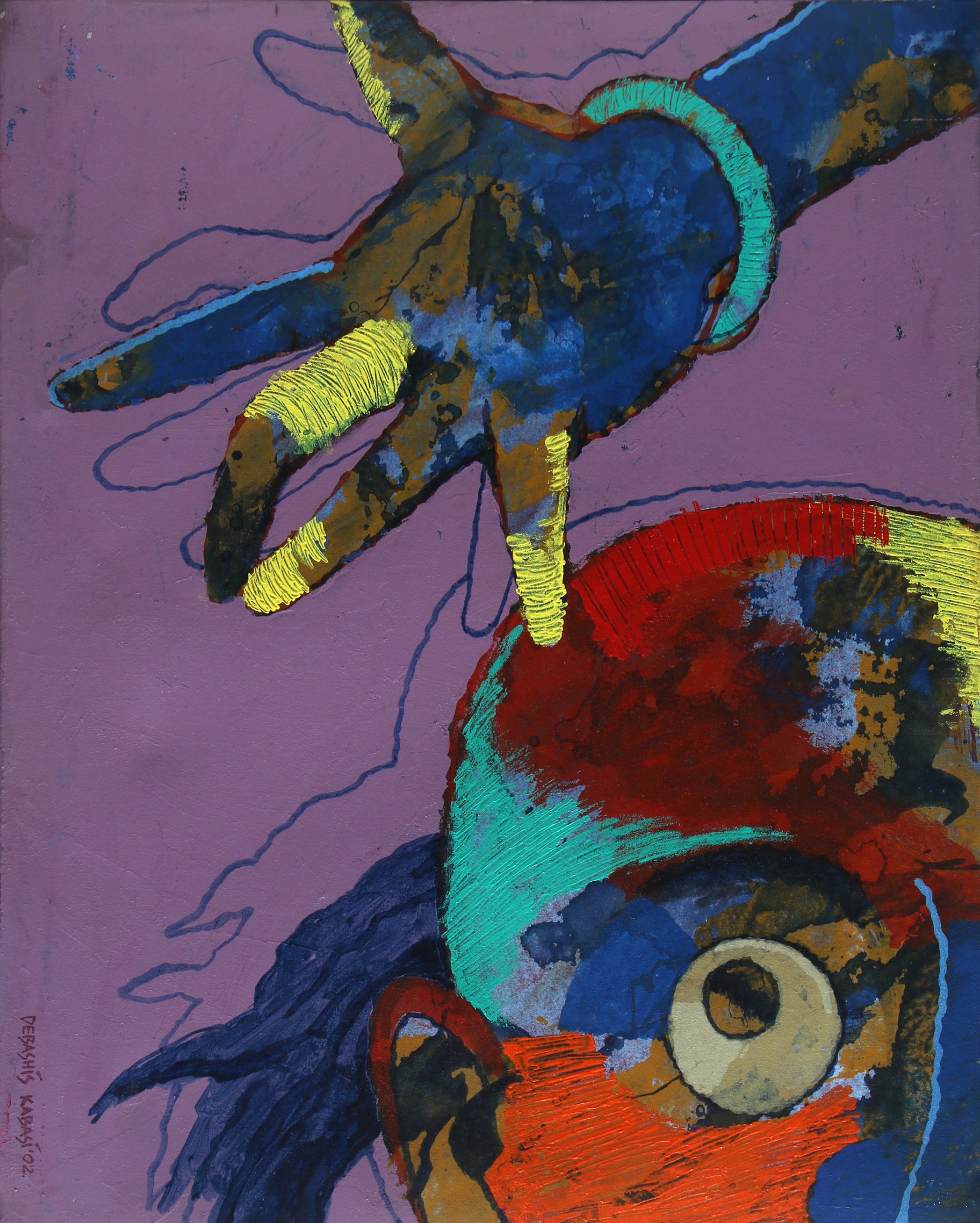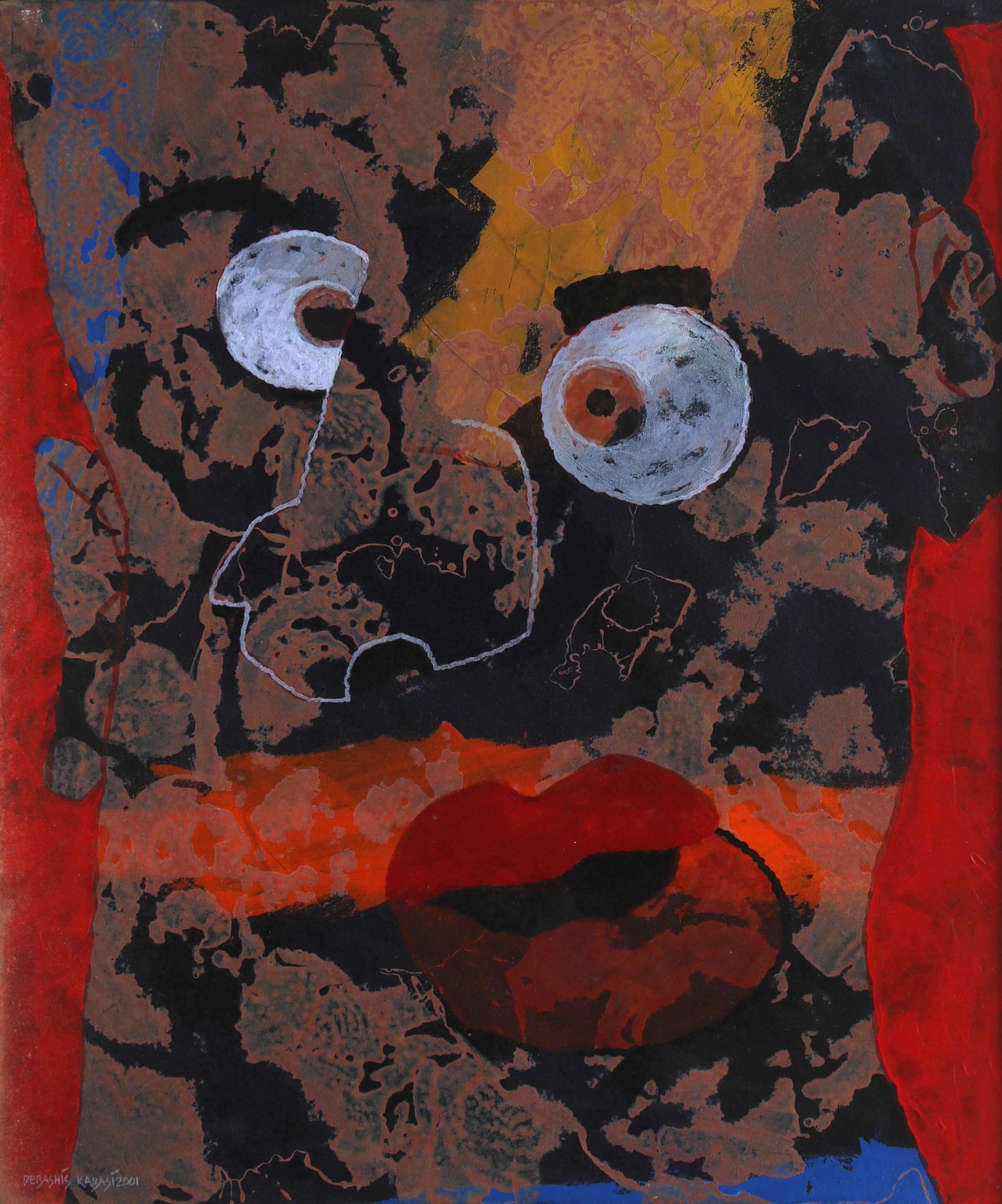 Kabasi explore and focuses on human figures in his artworks, showing their search for a clear way of life. His art reflects people who have split personalities because they struggle to keep up with changing times. His paintings grab your attention with their gestures, hand, and face movements. Many of his characters have eyes that look in two different directions, highlighting their split personalities. They seem to look into two worlds at the same time. For him, hand gestures are important for communication, and he paints various hand movements that seem to speak on their own.
