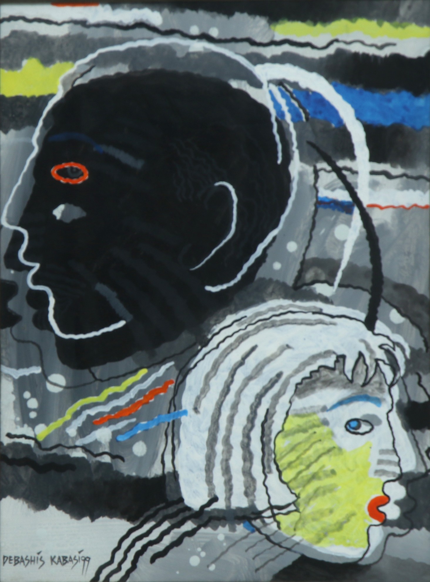 Debashis Kabasi was born in Kolkata, 1965. Although he is deaf and dumb. He holds the Bachelor’s degree in Fine Arts from Government College of Arts and Crafts, Kolkata and Master’s degree in Fine Arts from Visva Bharati University, Shantiniketan.