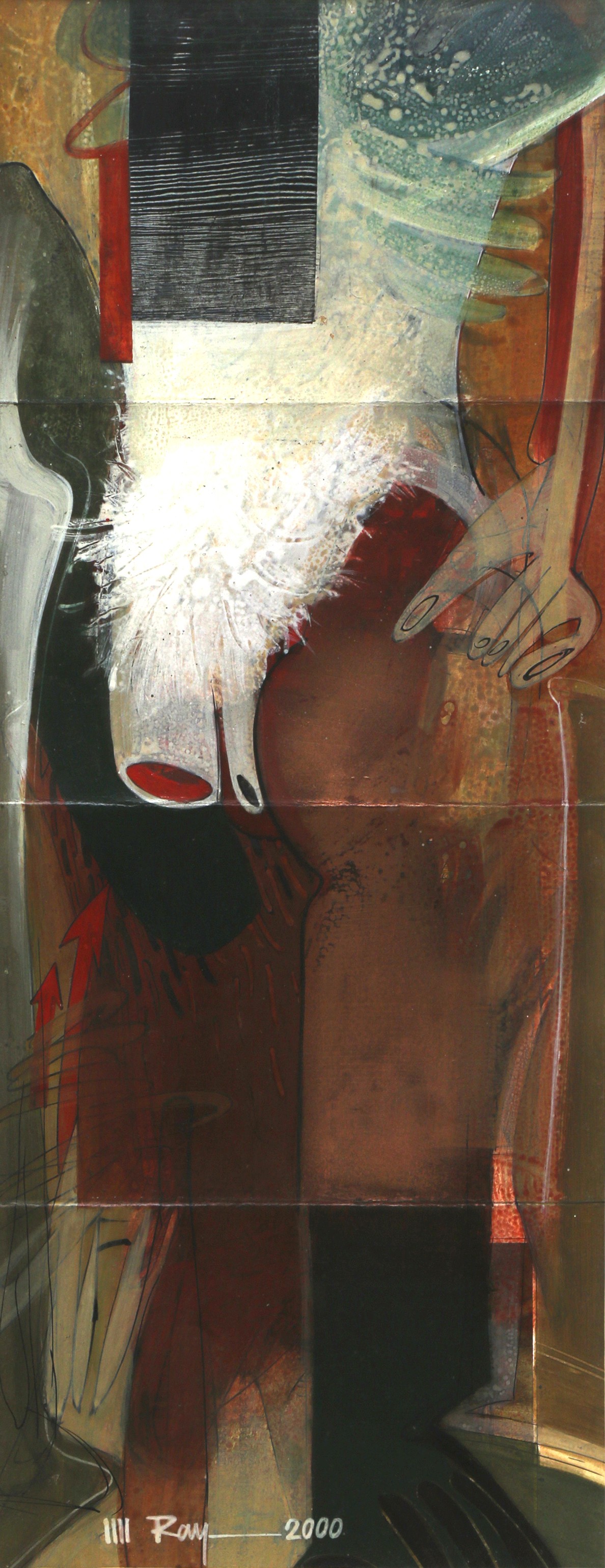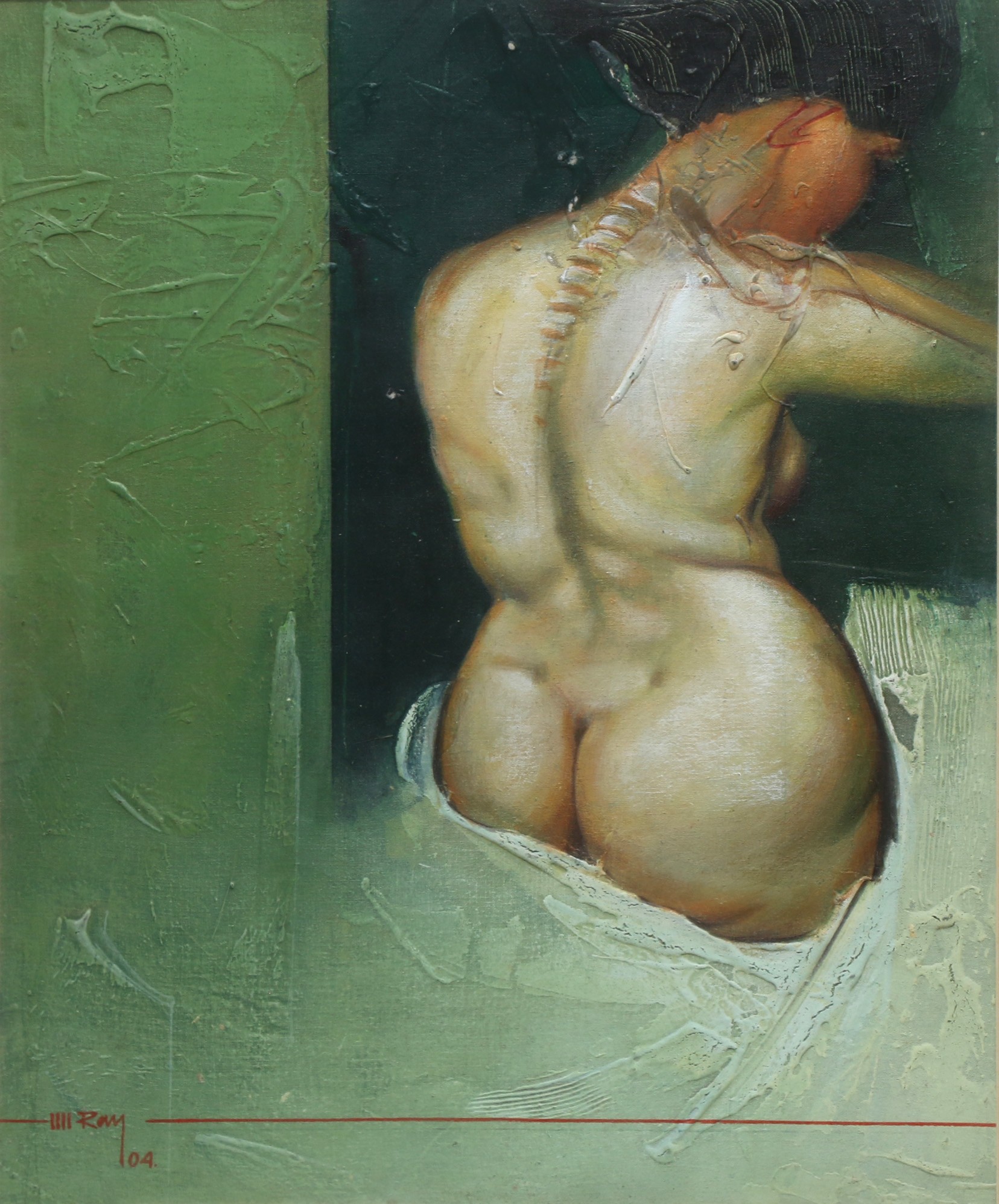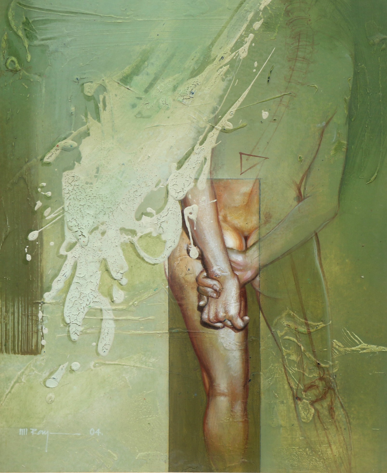 Ray frequently features women as subjects, often in nude or semi-nude depictions and also combined with the human anatomy of leges and hands (bones), and also explores themes, such as, the Ganga River, the mystic monsoon season, animals and birds, the song of dusk, and landscapes. His artworks reflect a deep connection with nature and often evoke a sense of dreams, imagination, or fantasy. In addition to his paintings, Ray also works on sculptures, maintaining a strong bond with the natural world. Compositions.