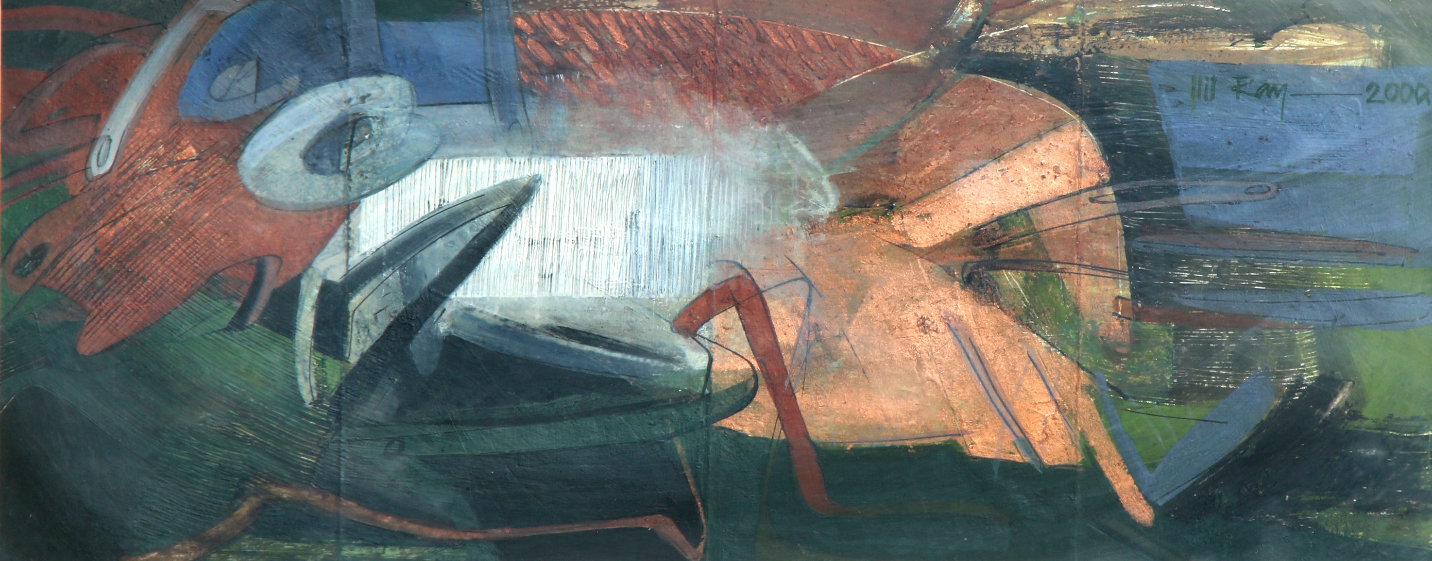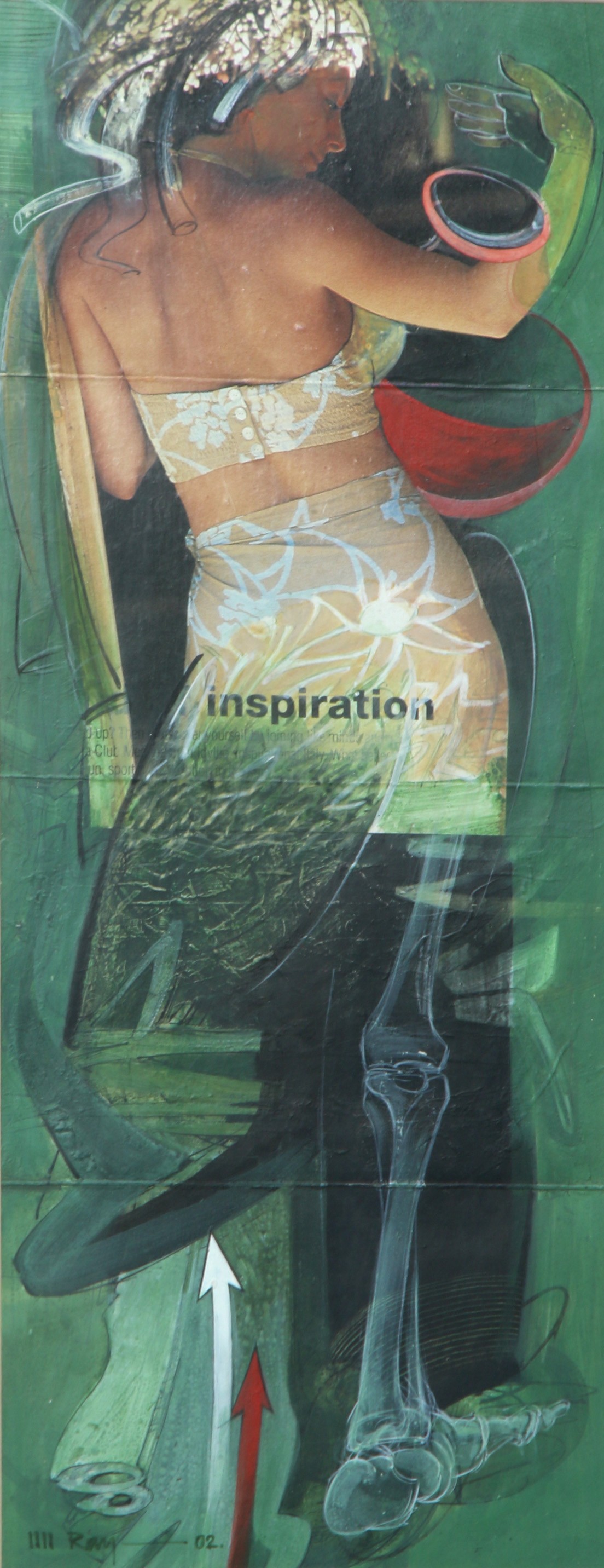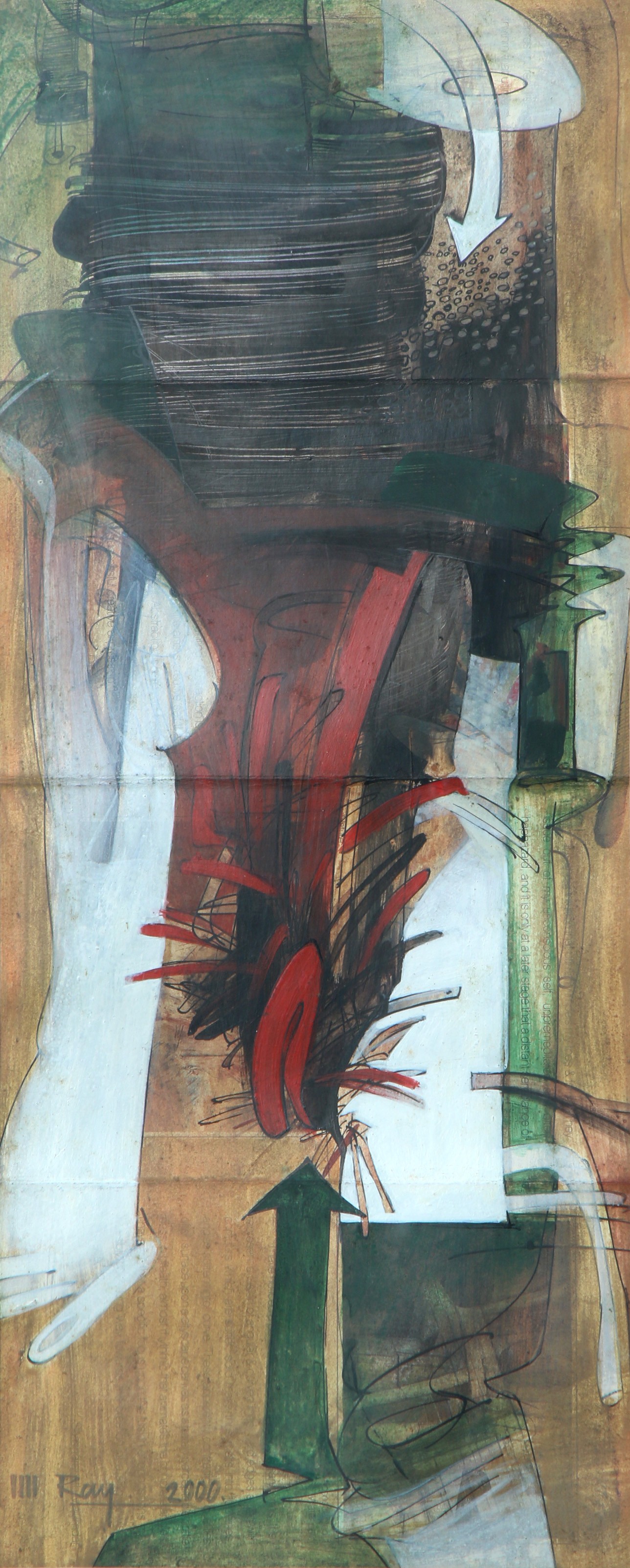 Ray frequently features women as subjects, often in nude or semi-nude depictions and also combined with the human anatomy of leges and hands (bones), and also explores themes, such as, the Ganga River, the mystic monsoon season, animals and birds, the song of dusk, and landscapes. His artworks reflect a deep connection with nature and often evoke a sense of dreams, imagination, or fantasy. In addition to his paintings, Ray also works on sculptures, maintaining a strong bond with the natural world. Compositions.