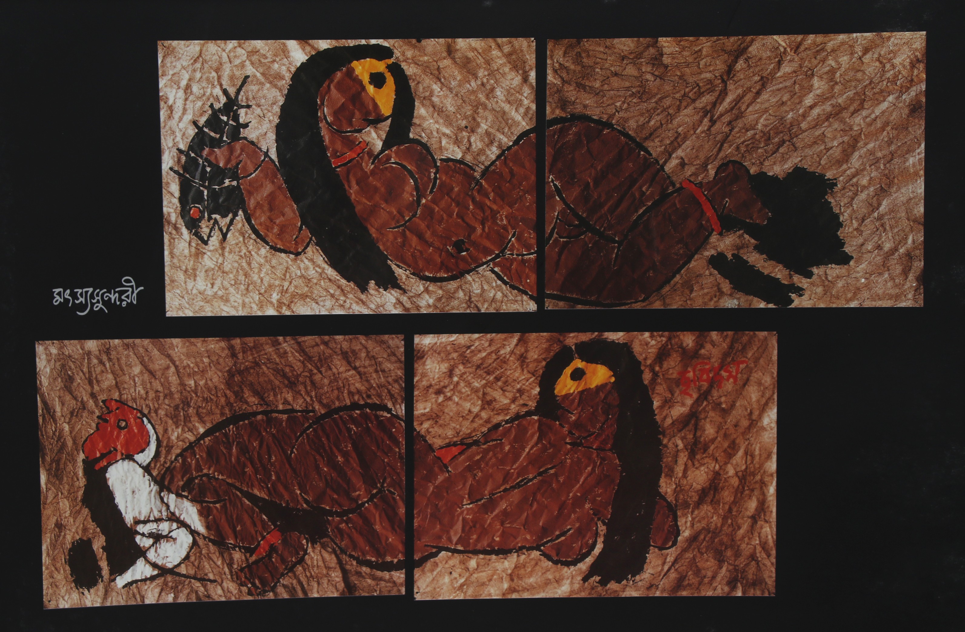 Husain experimented with various mediums, such as, oils, acrylics, tempera, fresco, ink, gouache, encaustic, or casein, and watercolours. He used black bold line and patchy brushstrokes and thick colours, modifying the Cubist style, include a vibrant and bright colour palette. Husain was also known as “Picasso of India”. He experimented extensively with forms and formats of painting and also other forms of visual art.