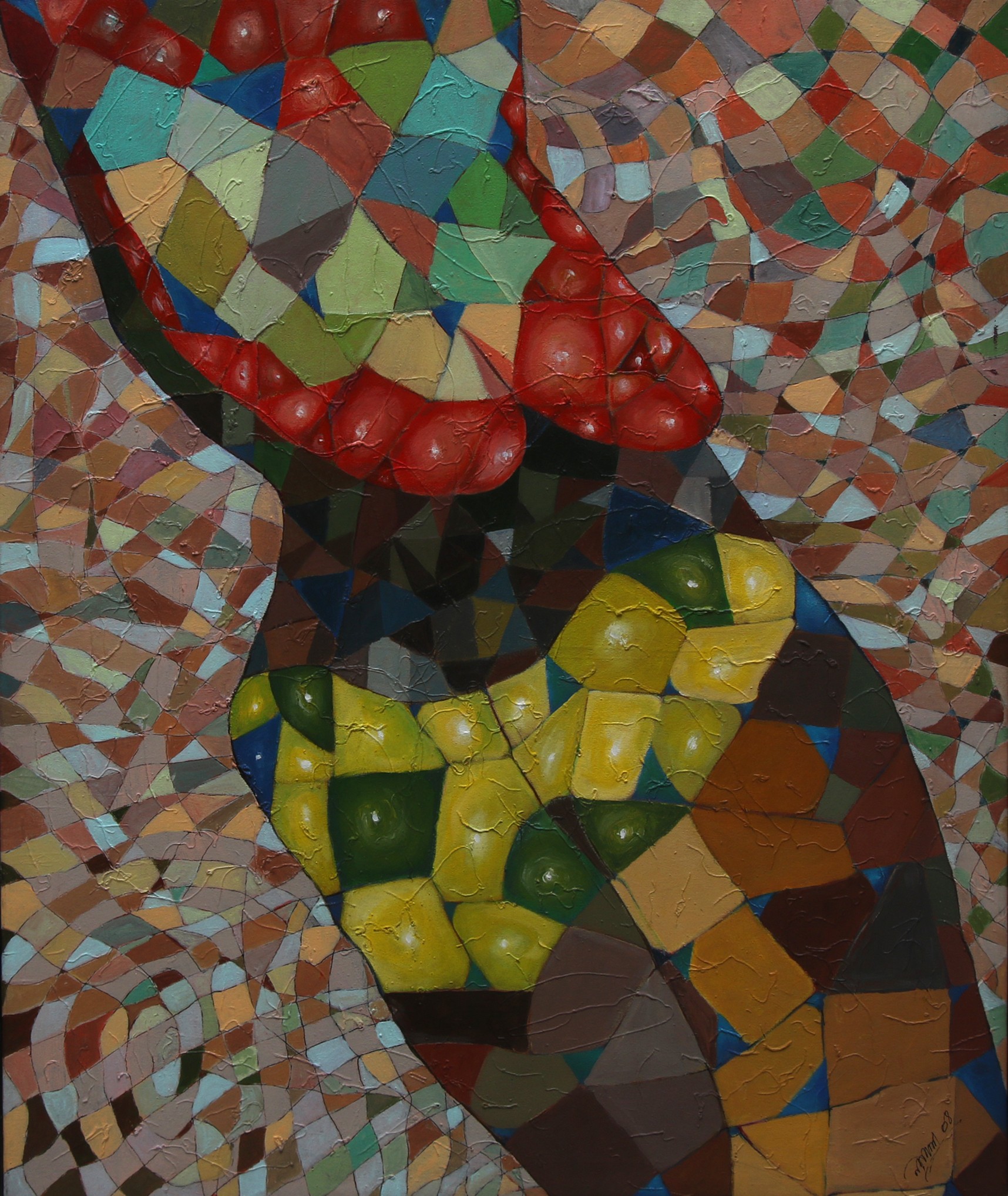According to Das, from his childhood, he observed nature and the activities around his surroundings. He has always been attracted to this dreamy world through his imagination. His paintings reflect those memories through geometric shapes. Das says, “In my childhood, I saw many migratory birds come to the lake near my village. I used to play with them. Though they were not very colourful, they inspired me.”
