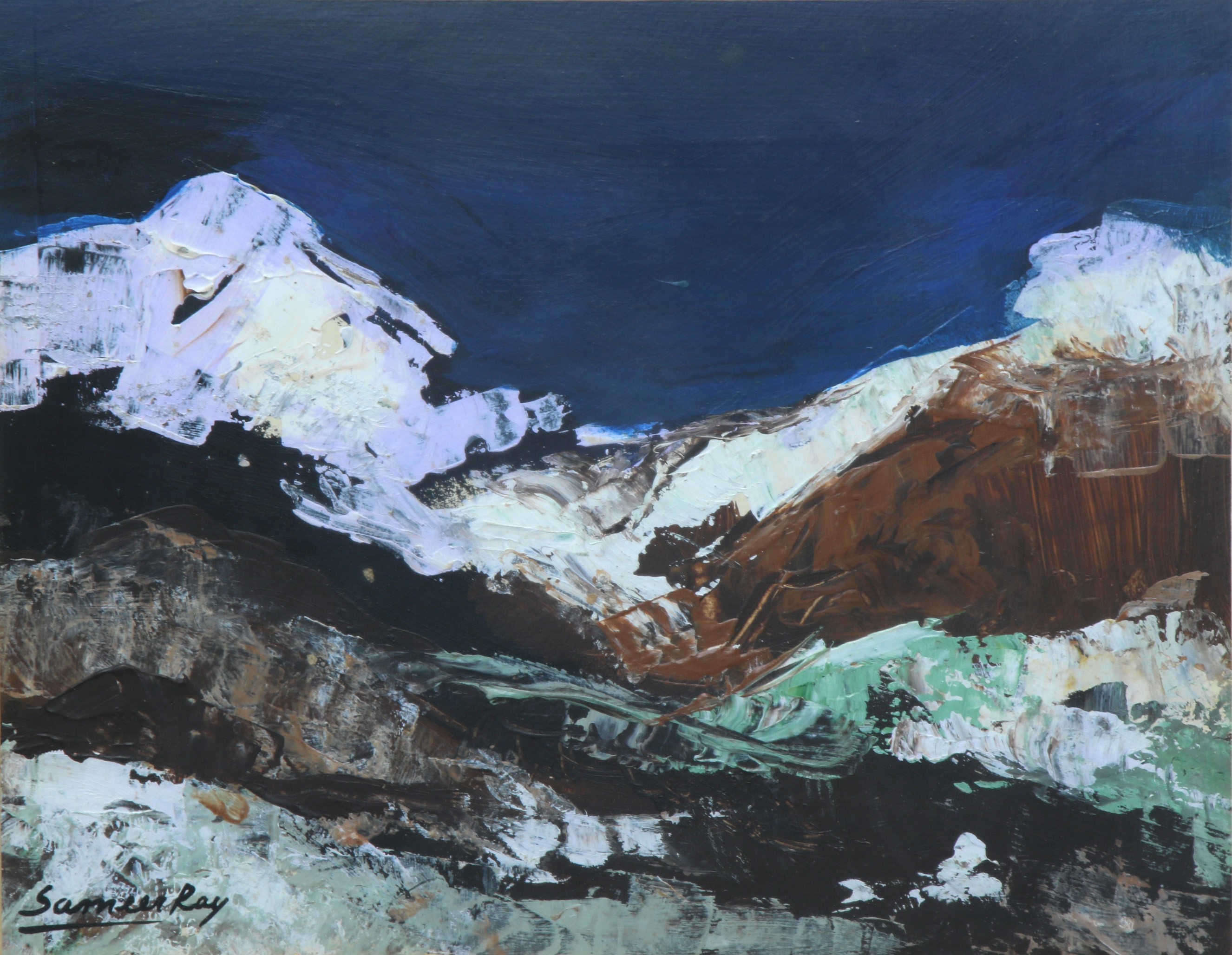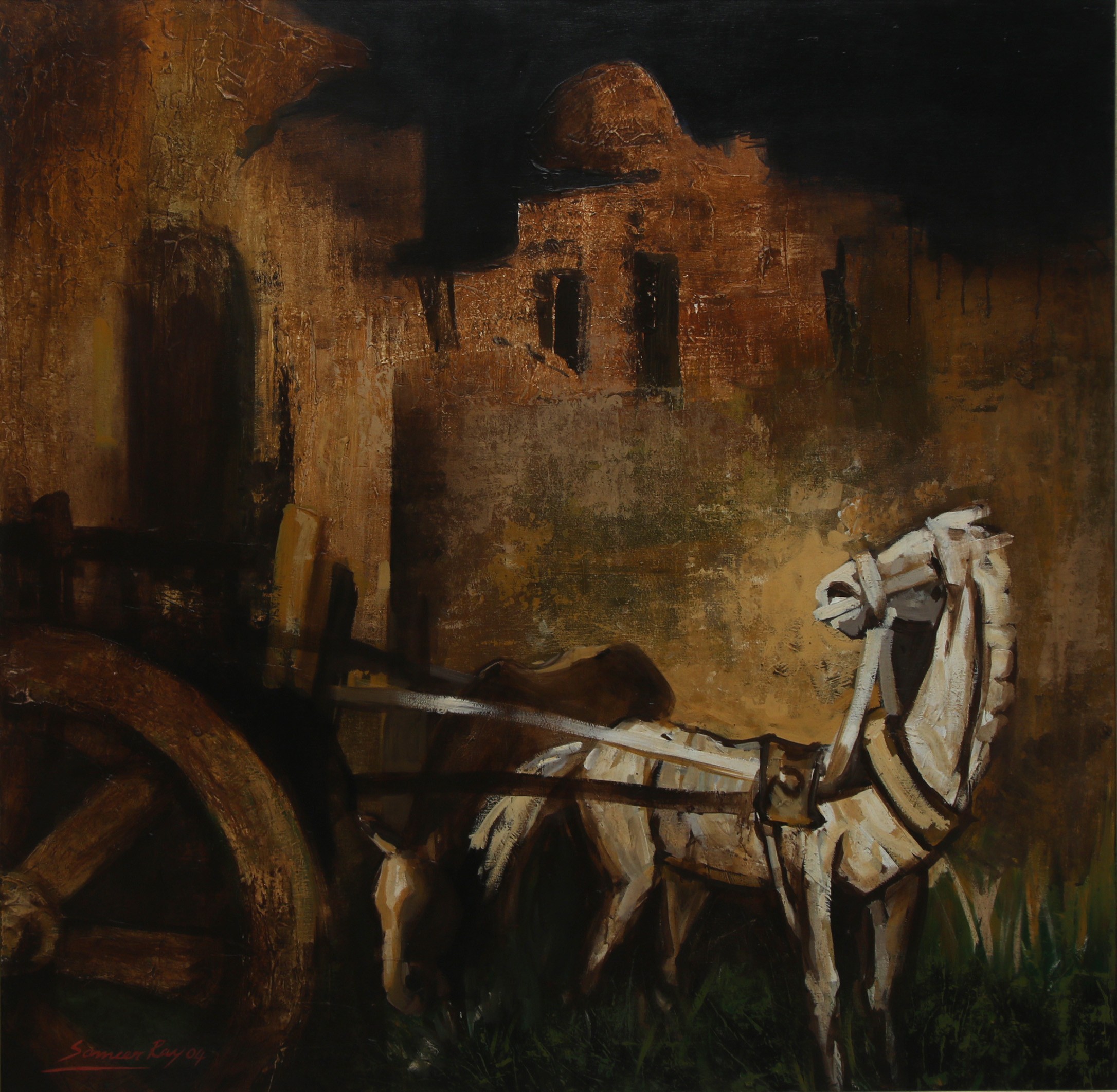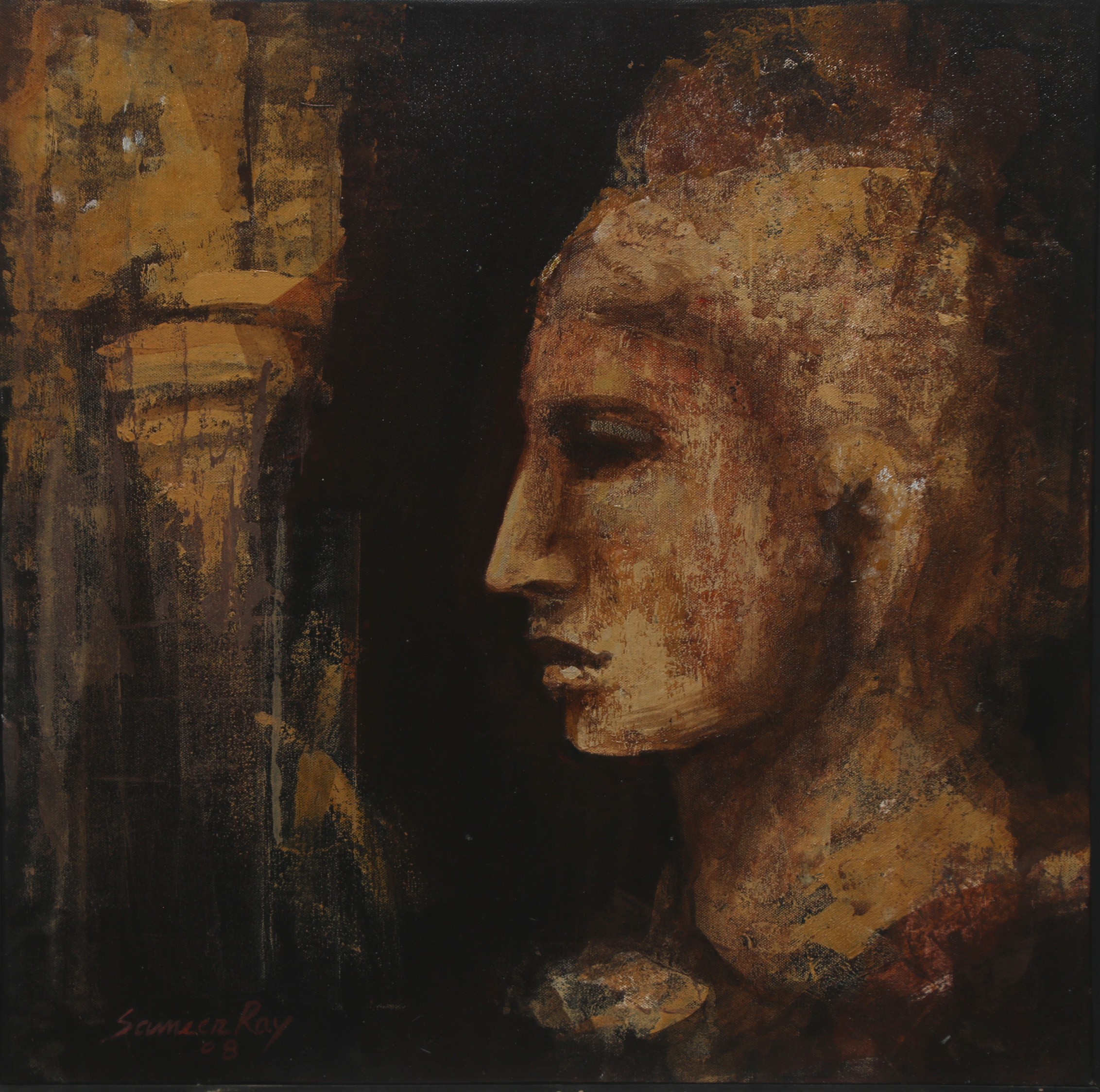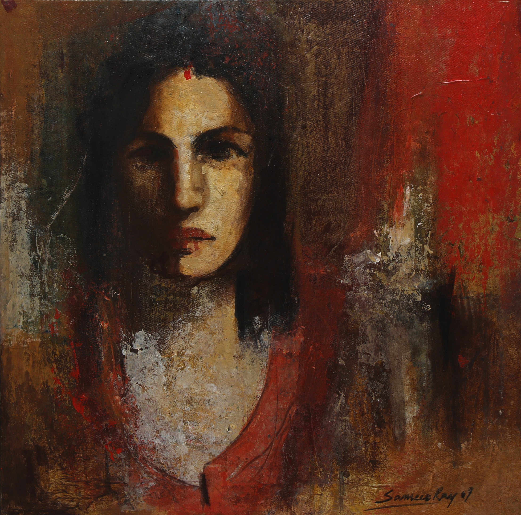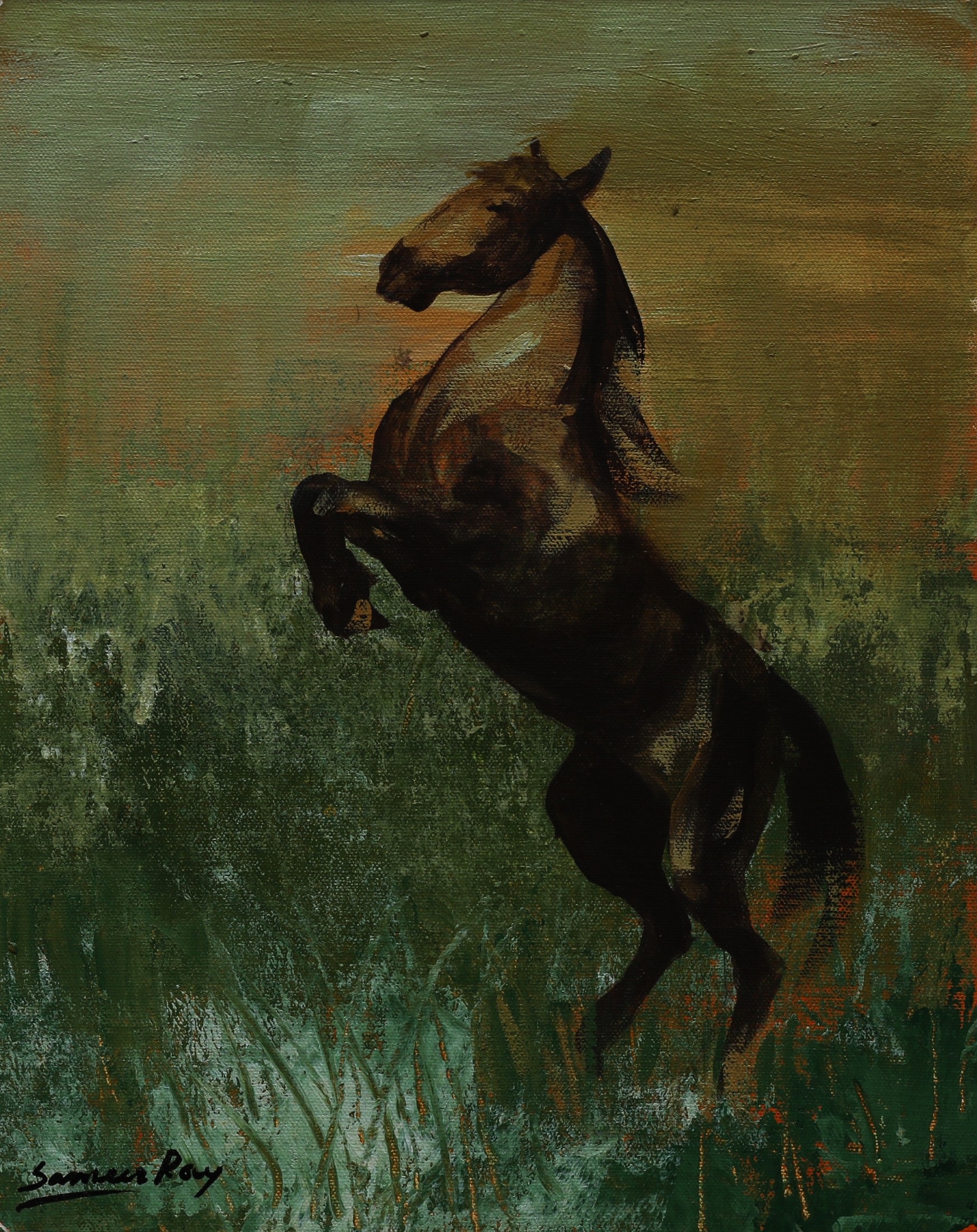 Sameer Ray was born and raised in Kolkata. He is an Indian contemporary artist who graduated in Fine Art from Government College of Arts & Crafts, Kolkata. Ray primarily painted figurative works, especially focusing on women in nudes and partially nudes. His paintings also feature horses, flora, fauna, and mountains. His colour palette is bright and subtle, characterized by patchy brushstrokes. Ray frequently uses browns, reds, greens, and yellows in oils and acrylics His artworks convey a sense of calm and peacefulness.