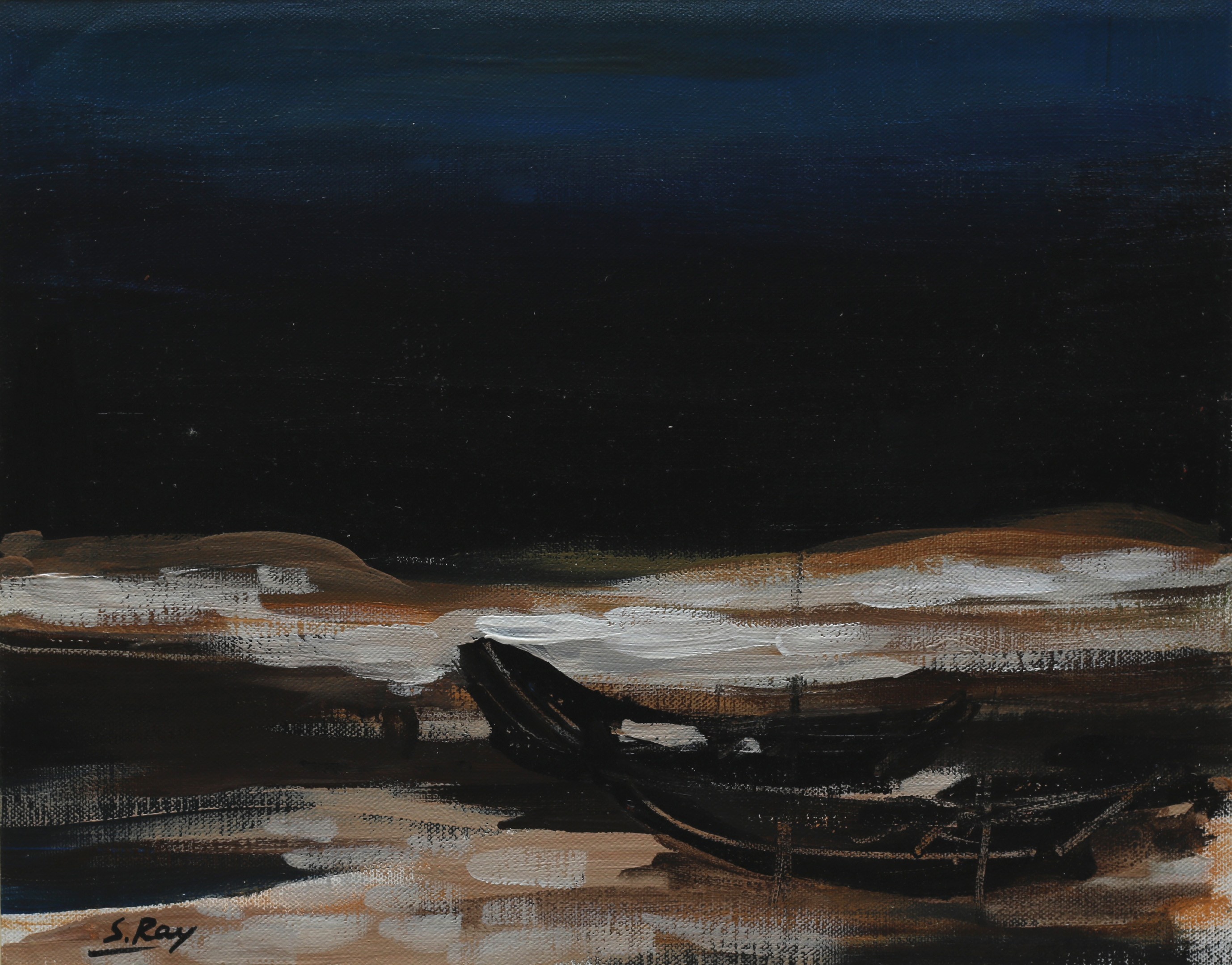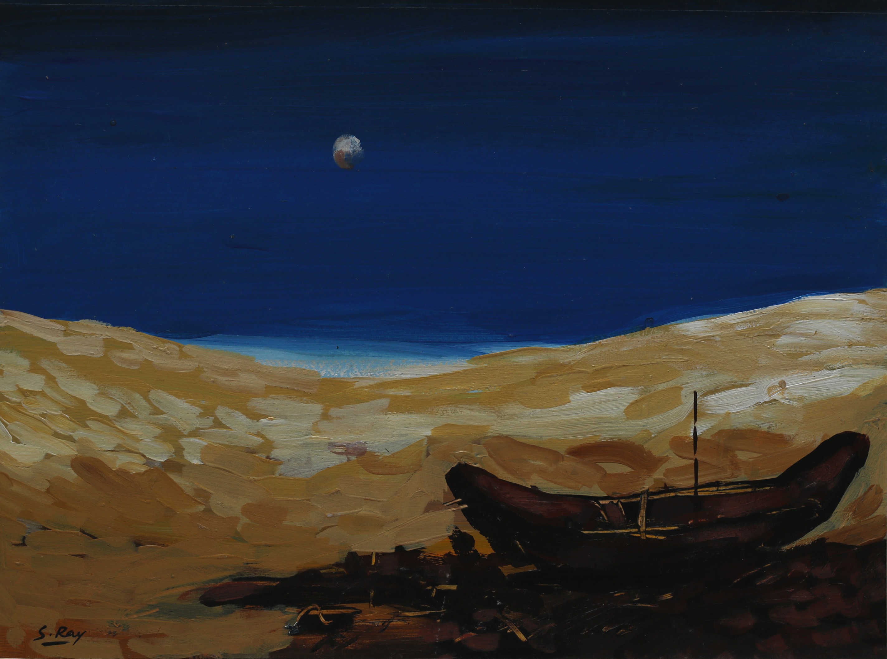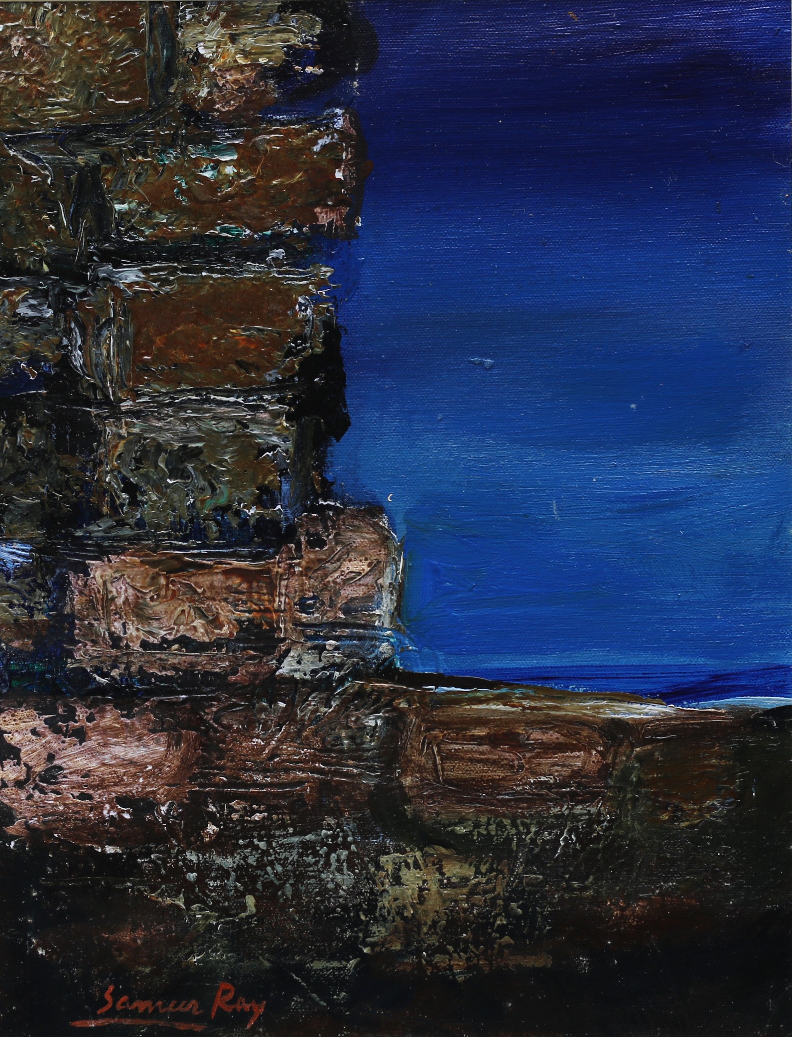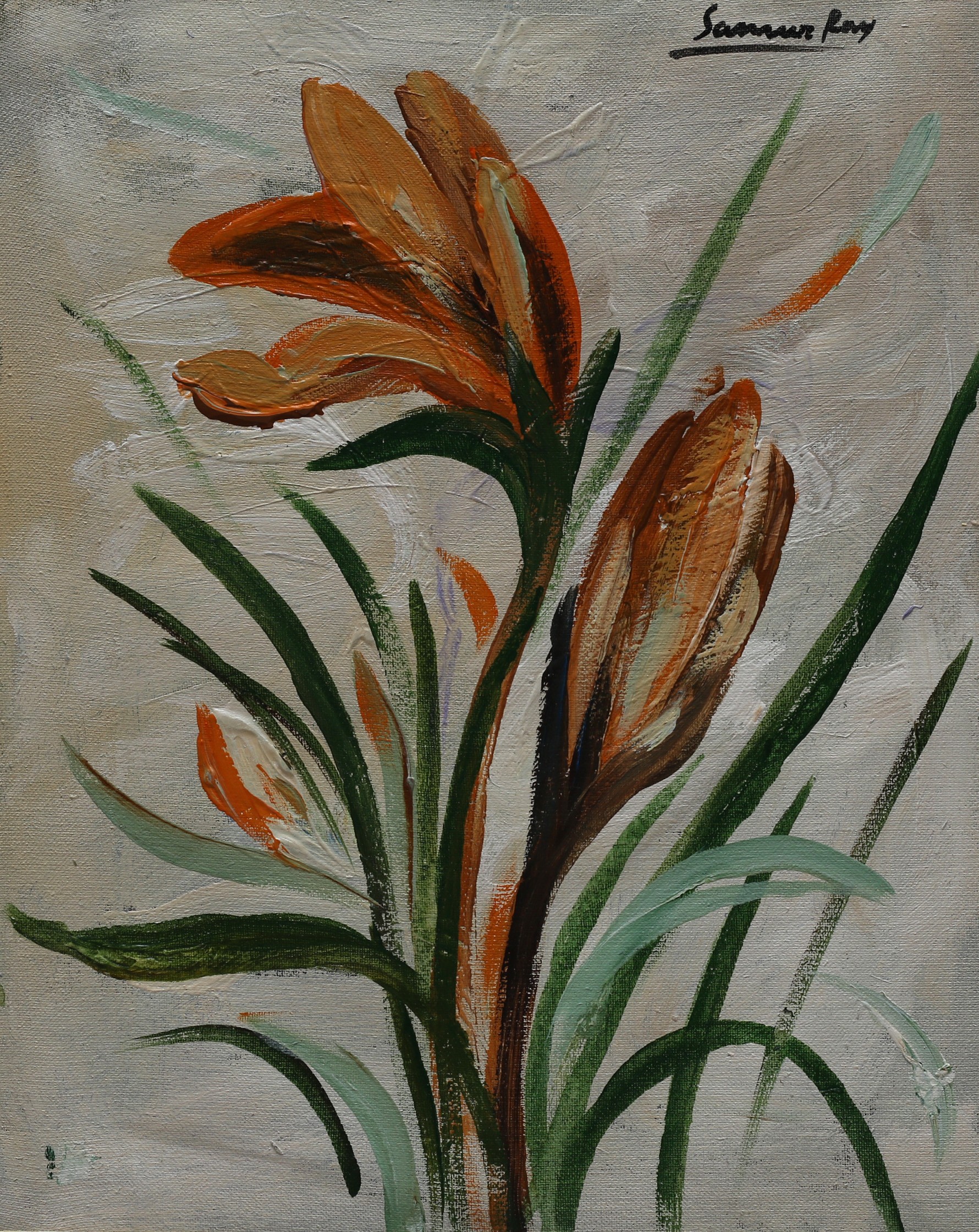 Sameer Ray was born and raised in Kolkata. He is an Indian contemporary artist who graduated in Fine Art from Government College of Arts & Crafts, Kolkata. Ray primarily painted figurative works, especially focusing on women in nudes and partially nudes. His paintings also feature horses, flora, fauna, and mountains. His colour palette is bright and subtle, characterized by patchy brushstrokes. Ray frequently uses browns, reds, greens, and yellows in oils and acrylics His artworks convey a sense of calm and peacefulness.