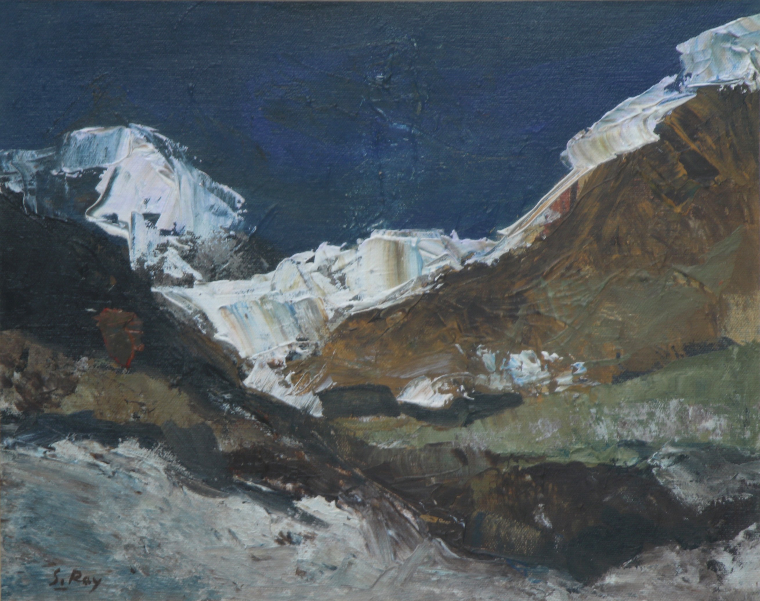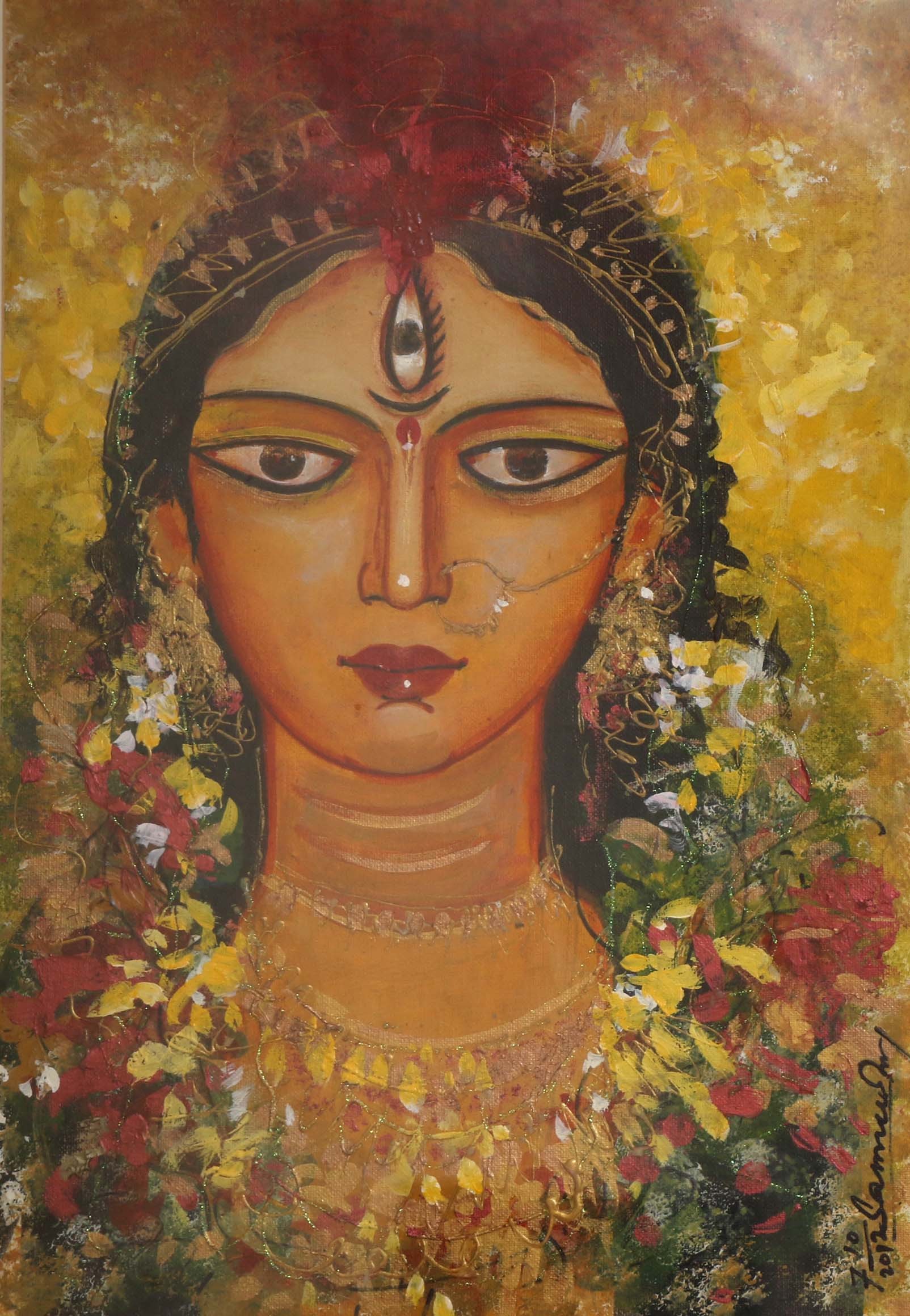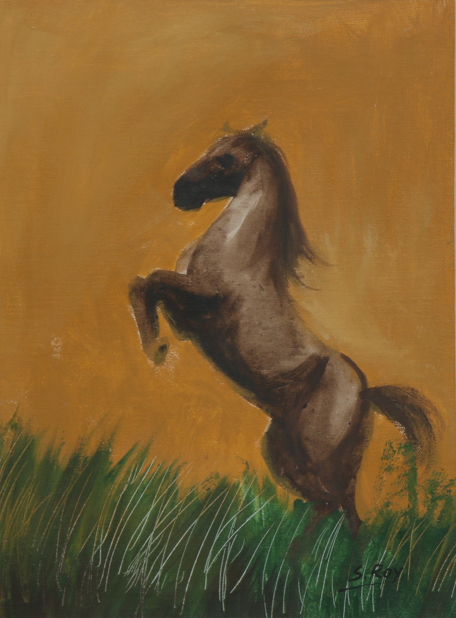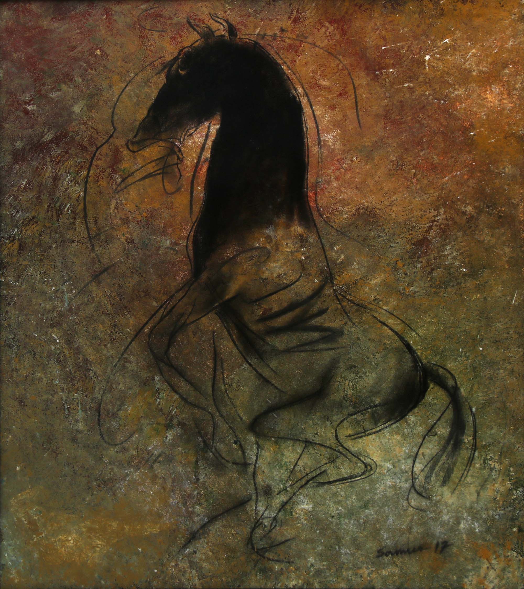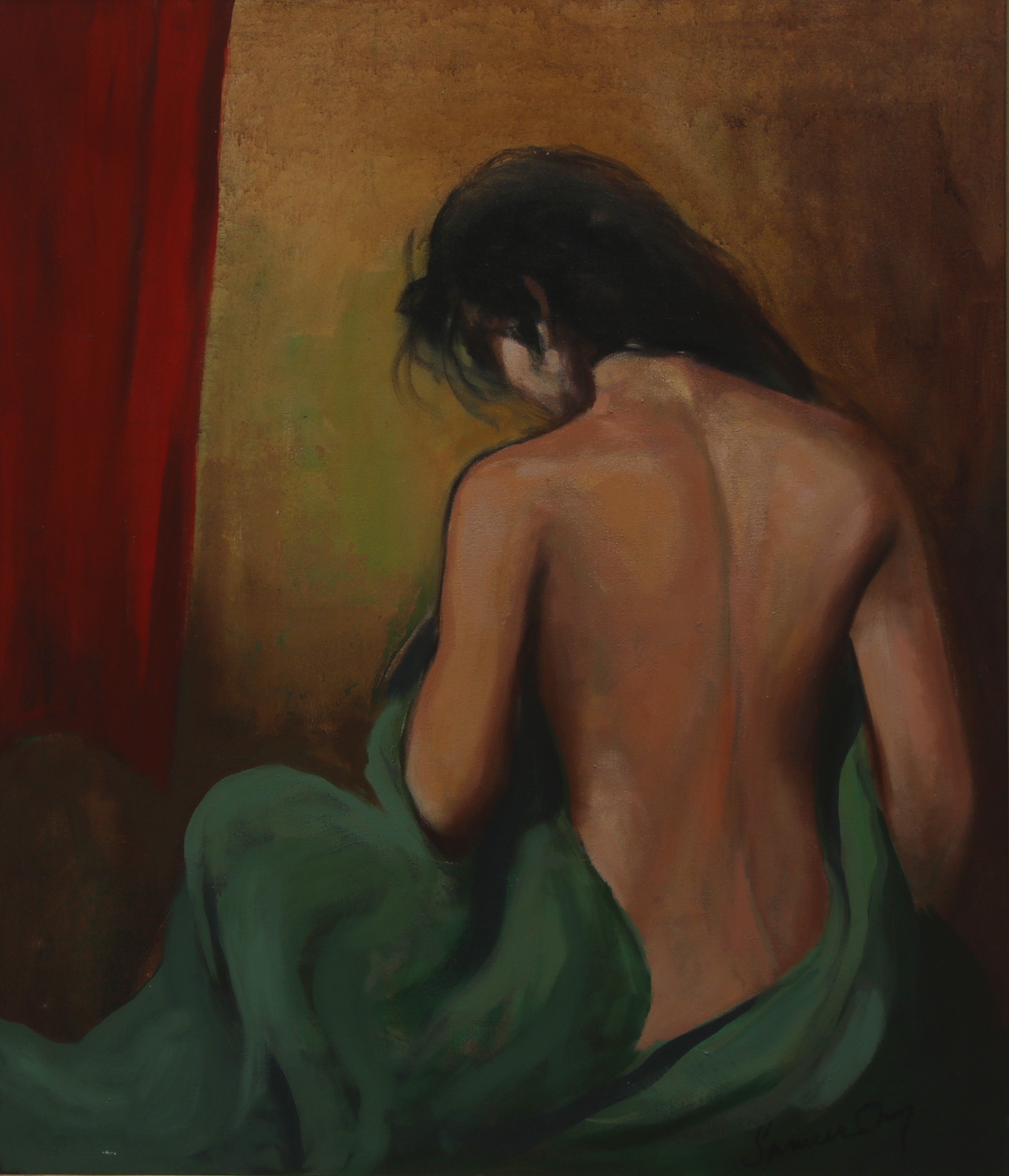 Sameer Ray was born and raised in Kolkata. He is an Indian contemporary artist who graduated in Fine Art from Government College of Arts & Crafts, Kolkata. Ray primarily painted figurative works, especially focusing on women in nudes and partially nudes. His paintings also feature horses, flora, fauna, and mountains. His colour palette is bright and subtle, characterized by patchy brushstrokes. Ray frequently uses browns, reds, greens, and yellows in oils and acrylics His artworks convey a sense of calm and peacefulness.