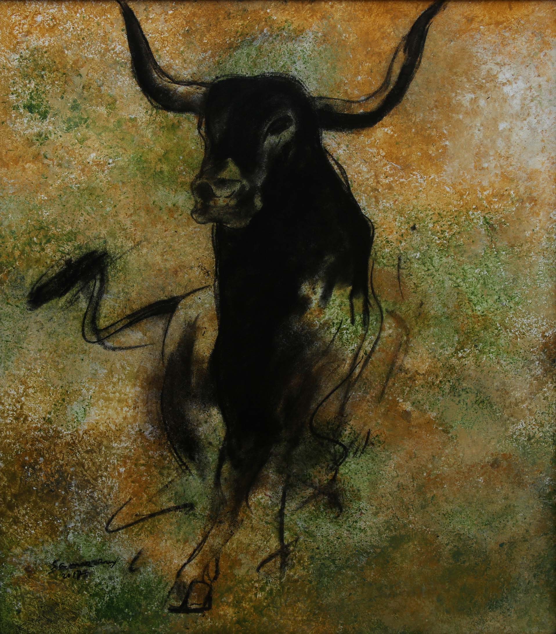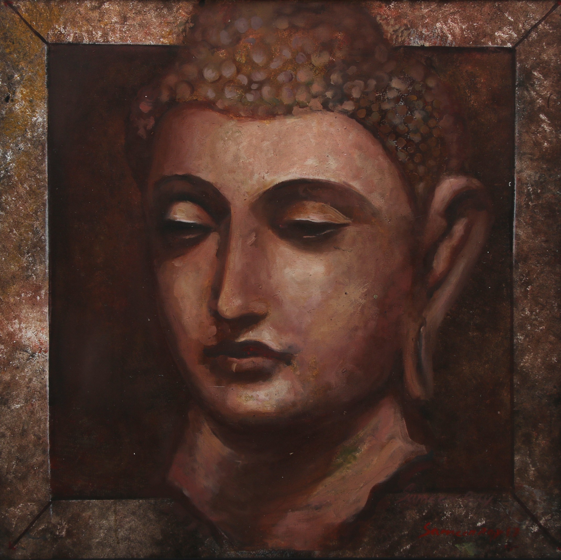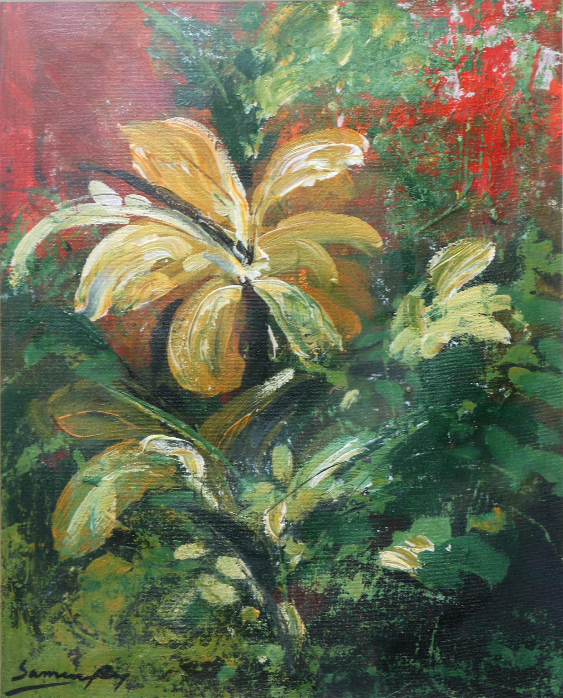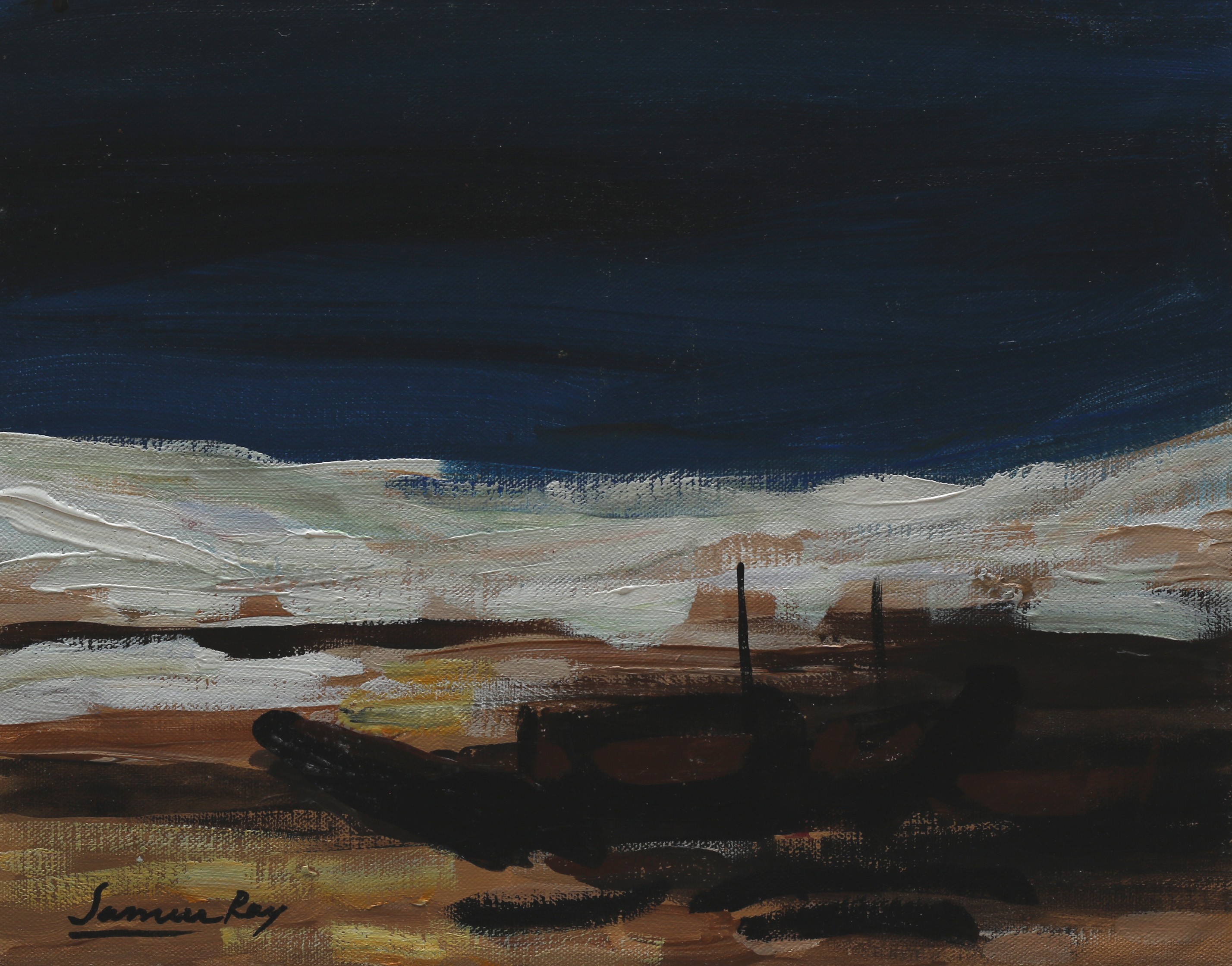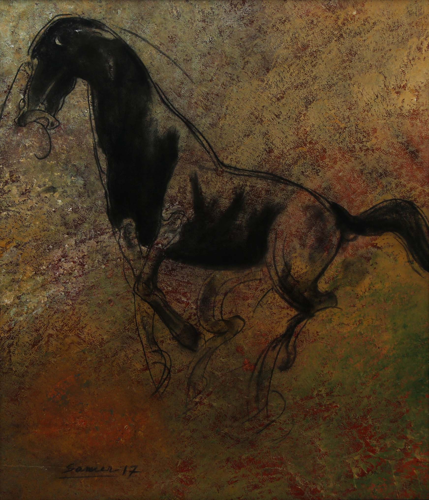 Sameer Ray was born and raised in Kolkata. He is an Indian contemporary artist who graduated in Fine Art from Government College of Arts & Crafts, Kolkata. Ray primarily painted figurative works, especially focusing on women in nudes and partially nudes. His paintings also feature horses, flora, fauna, and mountains. His colour palette is bright and subtle, characterized by patchy brushstrokes. Ray frequently uses browns, reds, greens, and yellows in oils and acrylics His artworks convey a sense of calm and peacefulness.
