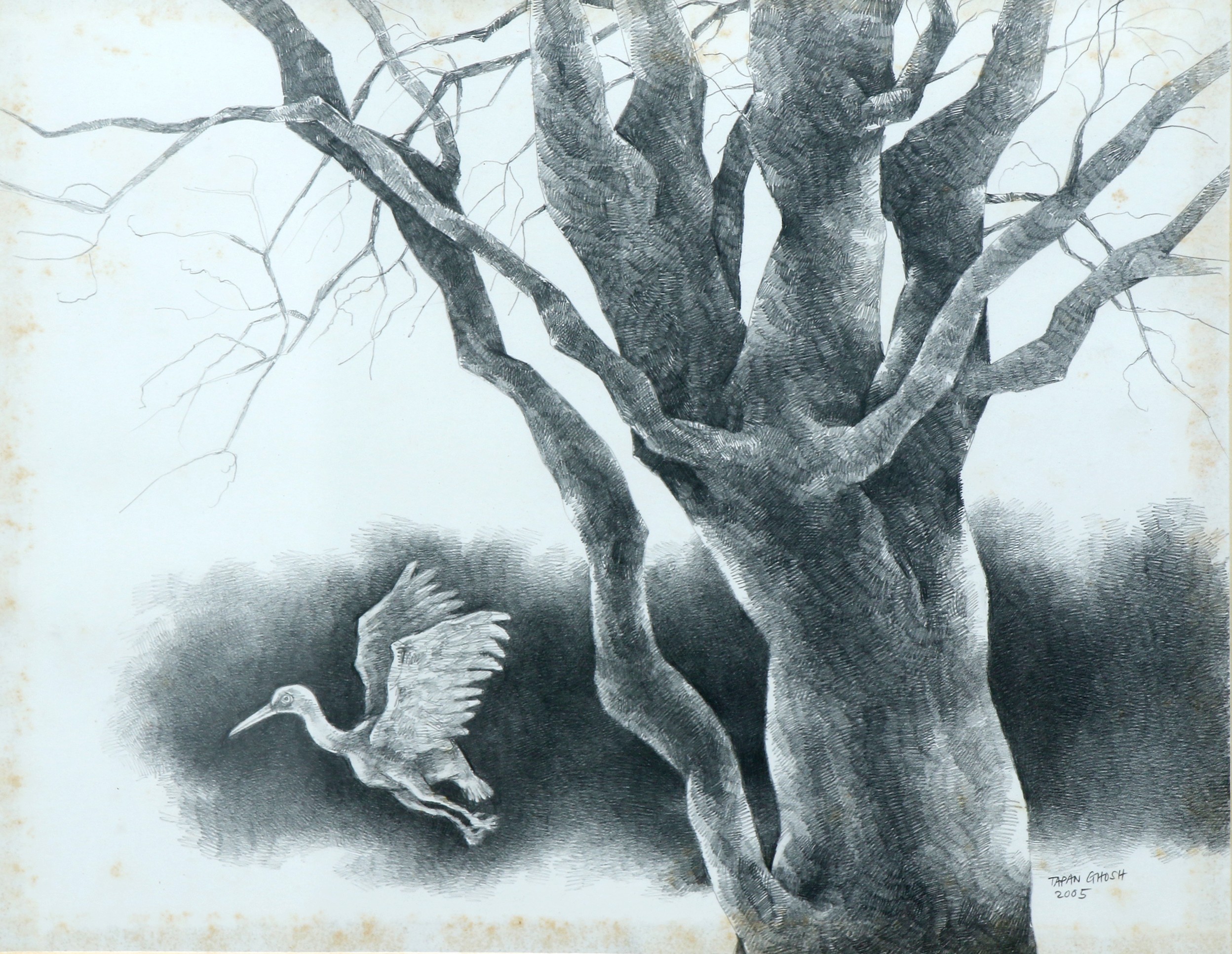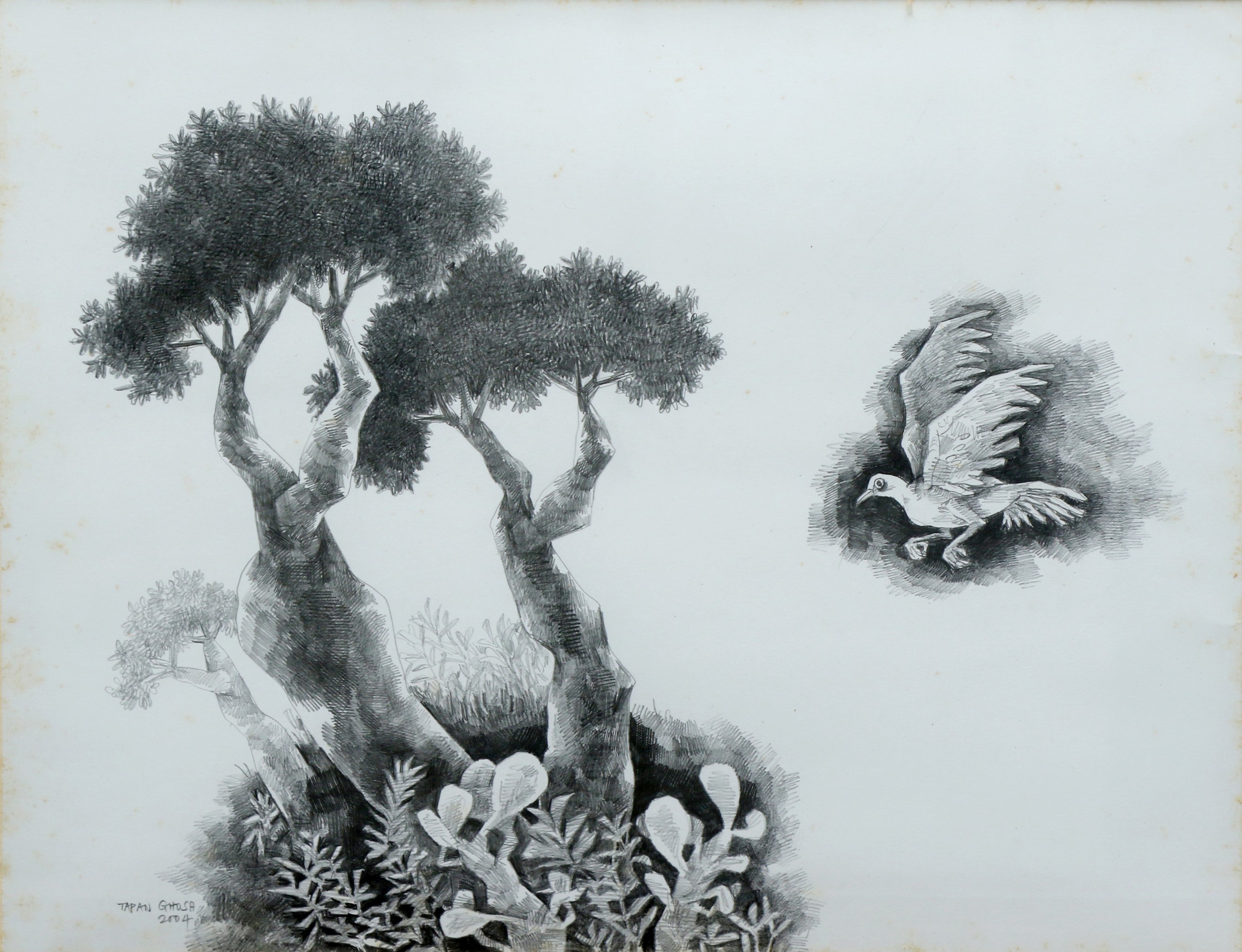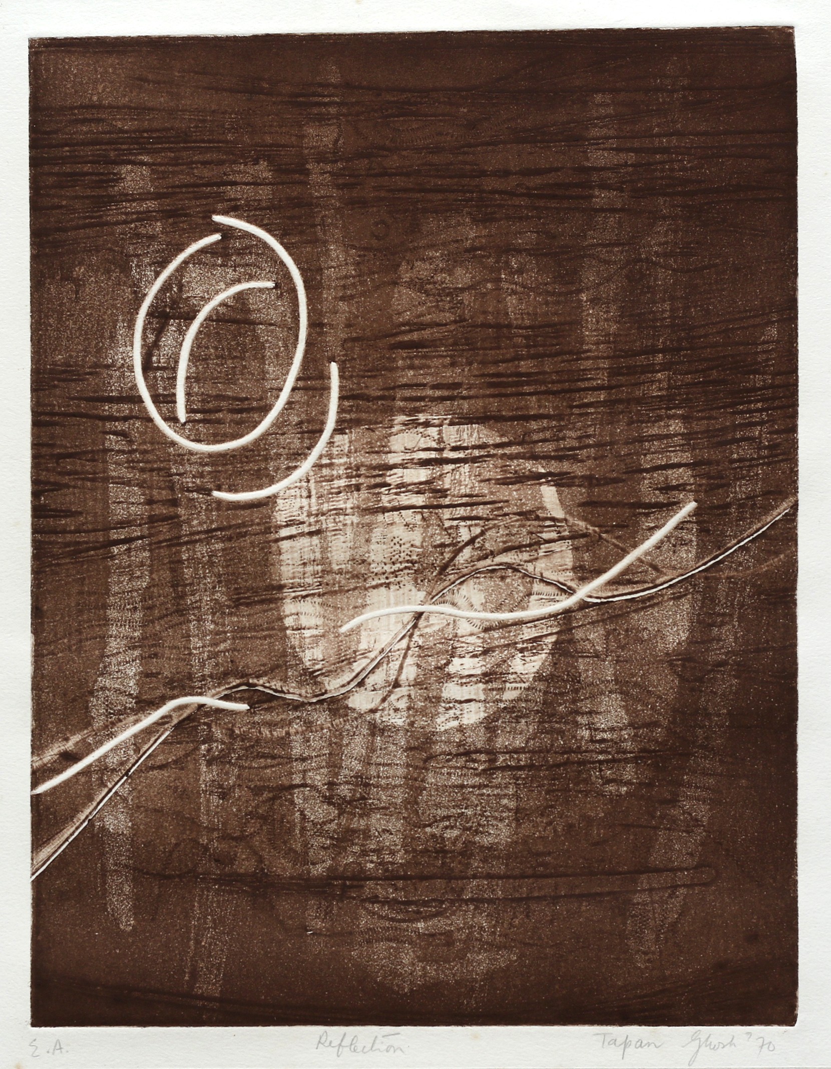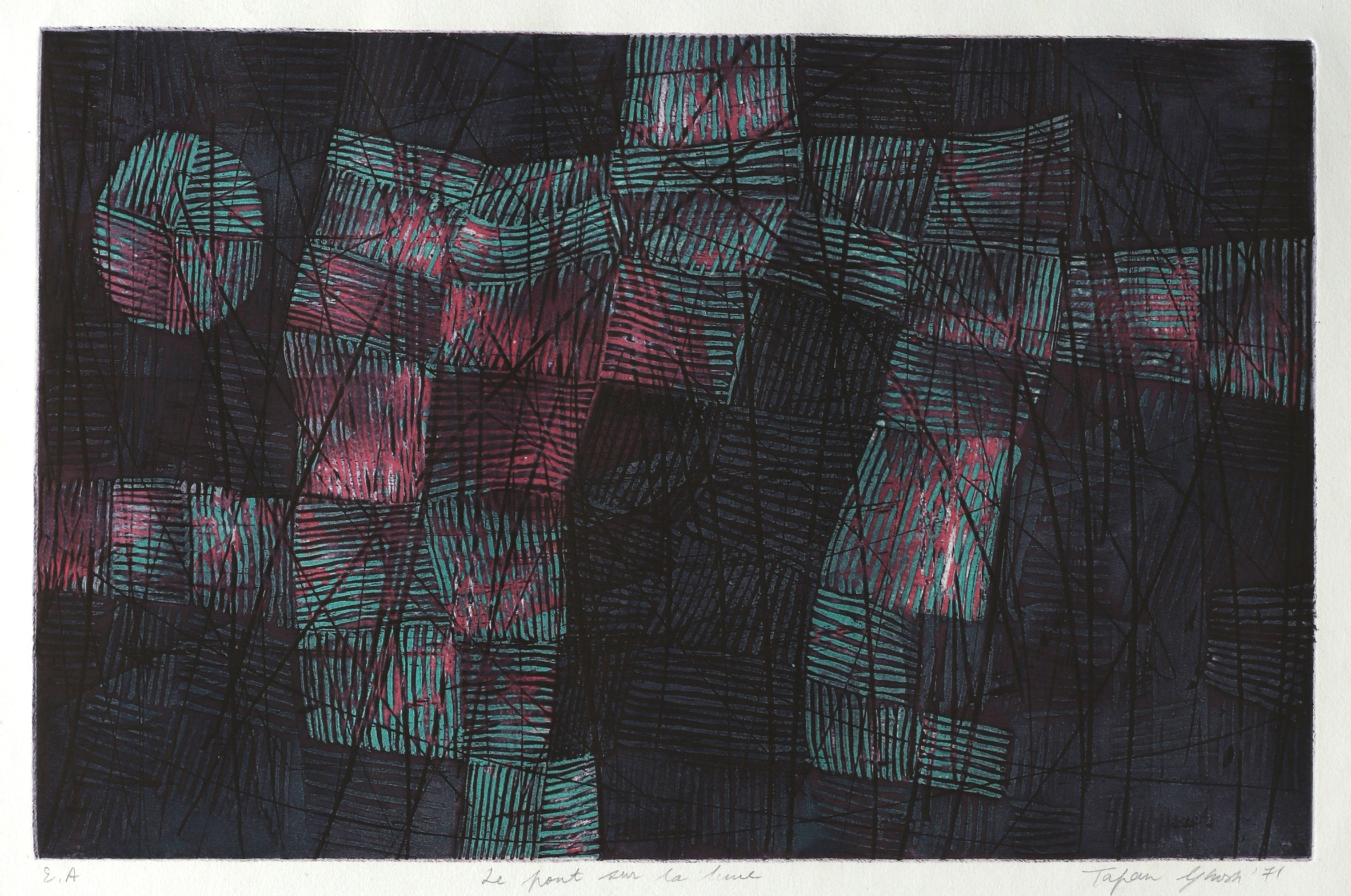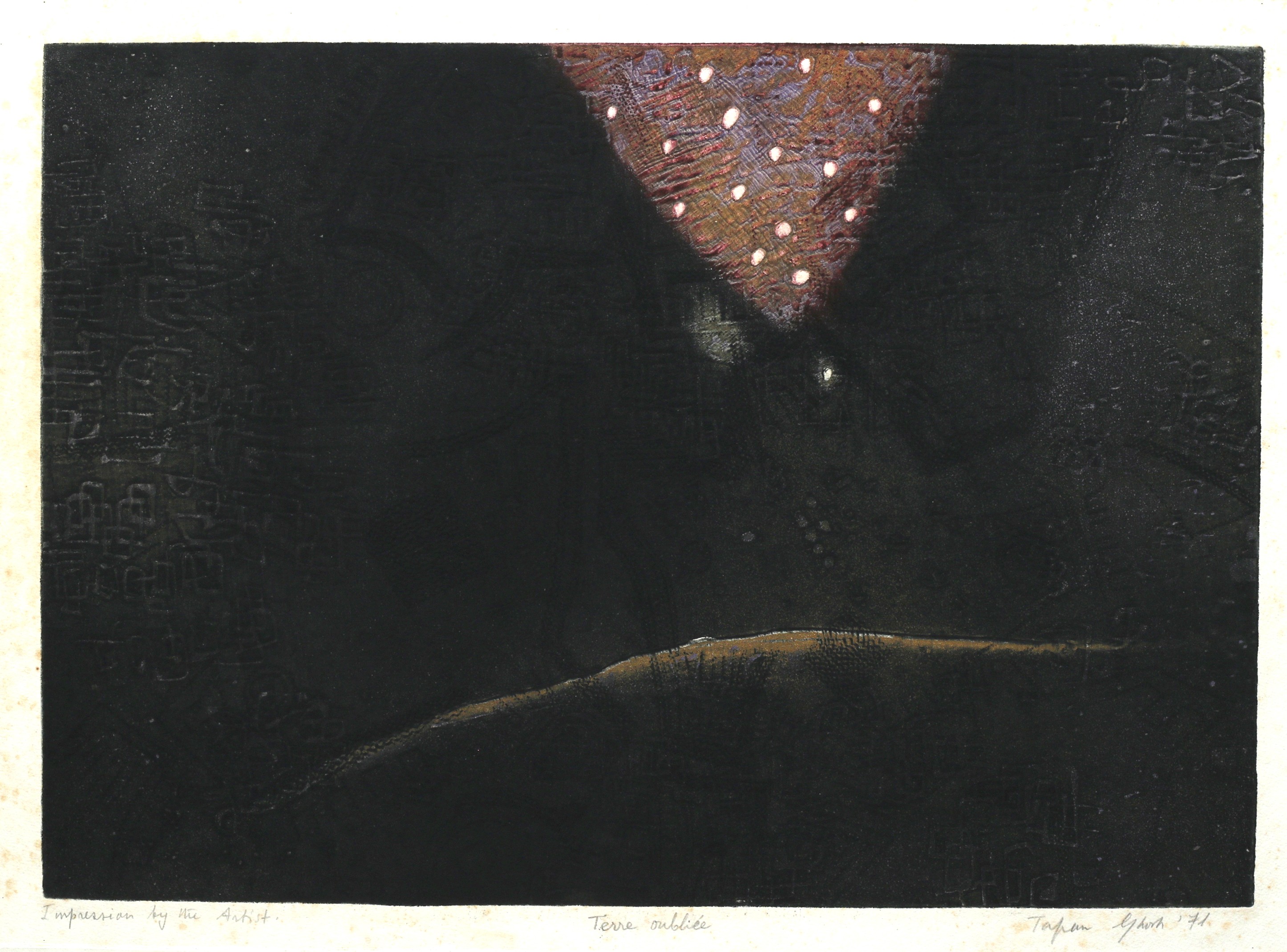 Tapan Ghosh was born in Kolkata, 1943. And he was graduated from Govt. College of Art & Craft, Kolkata. He studied modern printmaking (Graphics) at Atelier 17 in Paris, under the guidance of English painter Stanley William Hayter and Indian artist Krishna Reddy. Atelier 17 was renowned for its innovative approaches to printmaking, and Ghosh's time there influenced his artistic practice significantly. Additionally, he studied Art-monumental (fresco) at the Cole Nationale Supérieure des Beaux-Arts in Paris ( National School of Fine Arts in Paris.), under the esteemed Professor Bertholle. This experience expanded Ghosh's range to include fresco techniques, enriching his understanding of monumental art forms. These formative experiences in Paris played a crucial role in shaping his career as an artist. Ghosh’s artworks exhibited in many art exhibitions and also featured in prestigious auctions and charitable organizations dedicated to promoting art and raising awareness about it. He received several National and International awards.