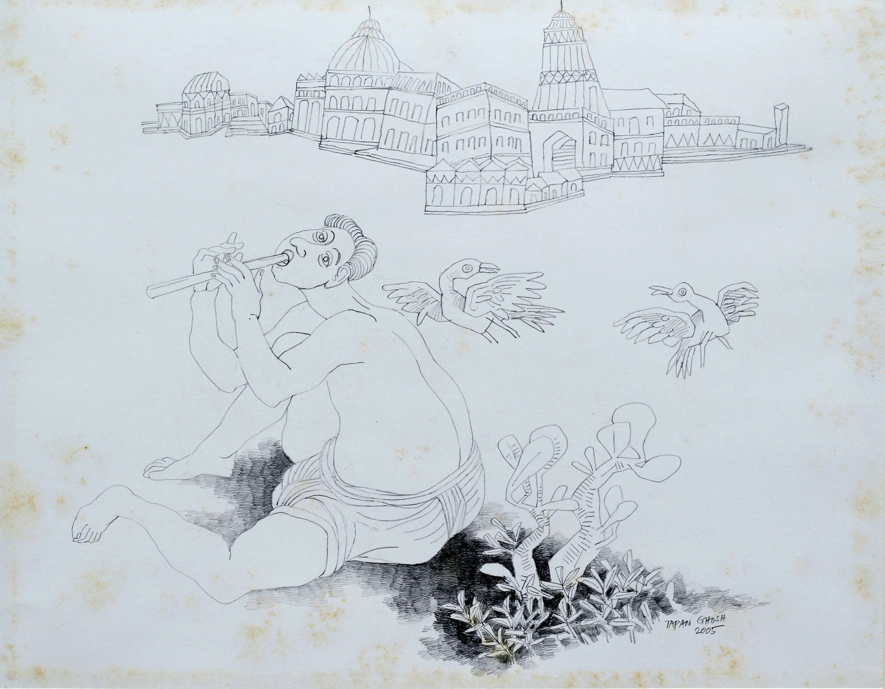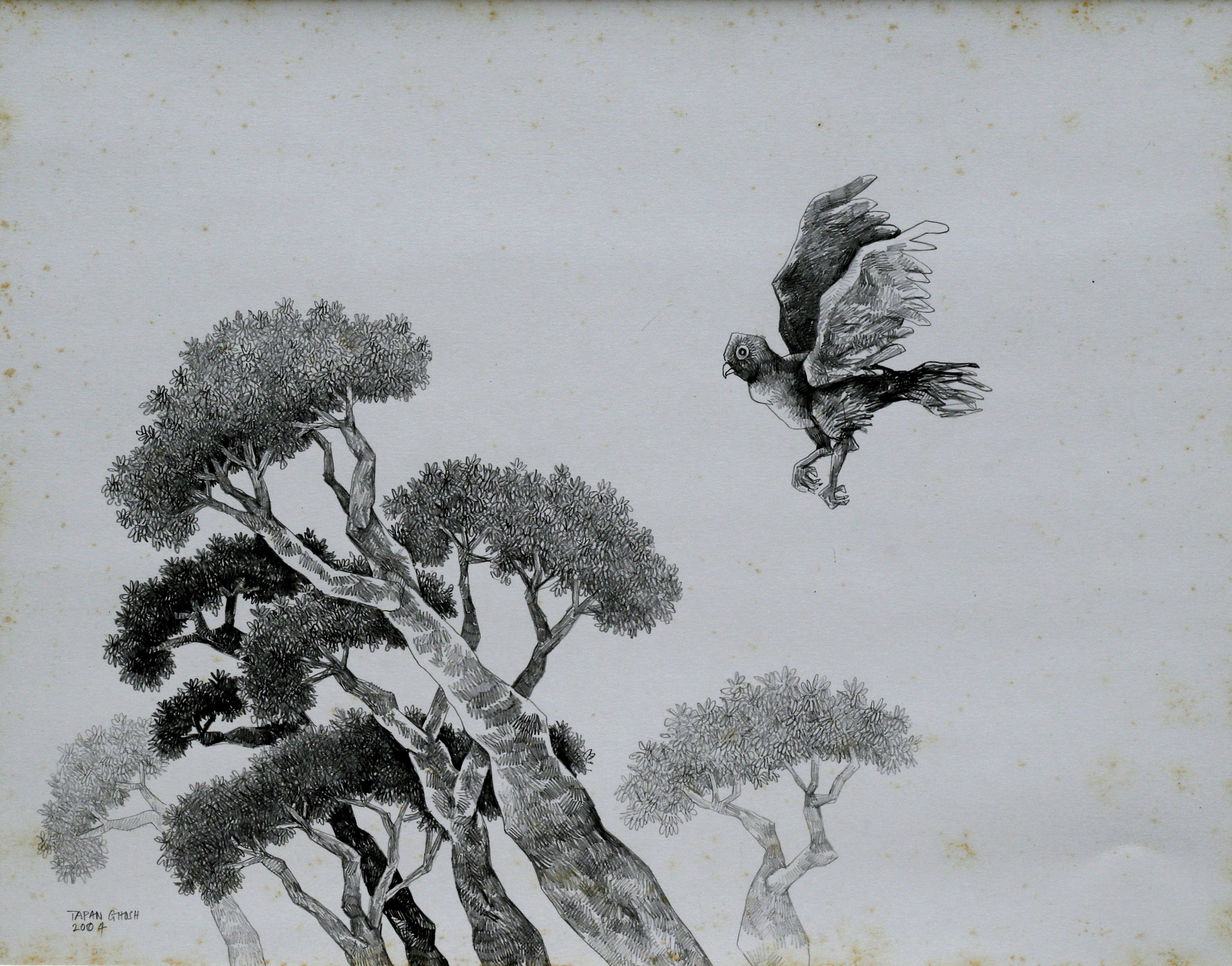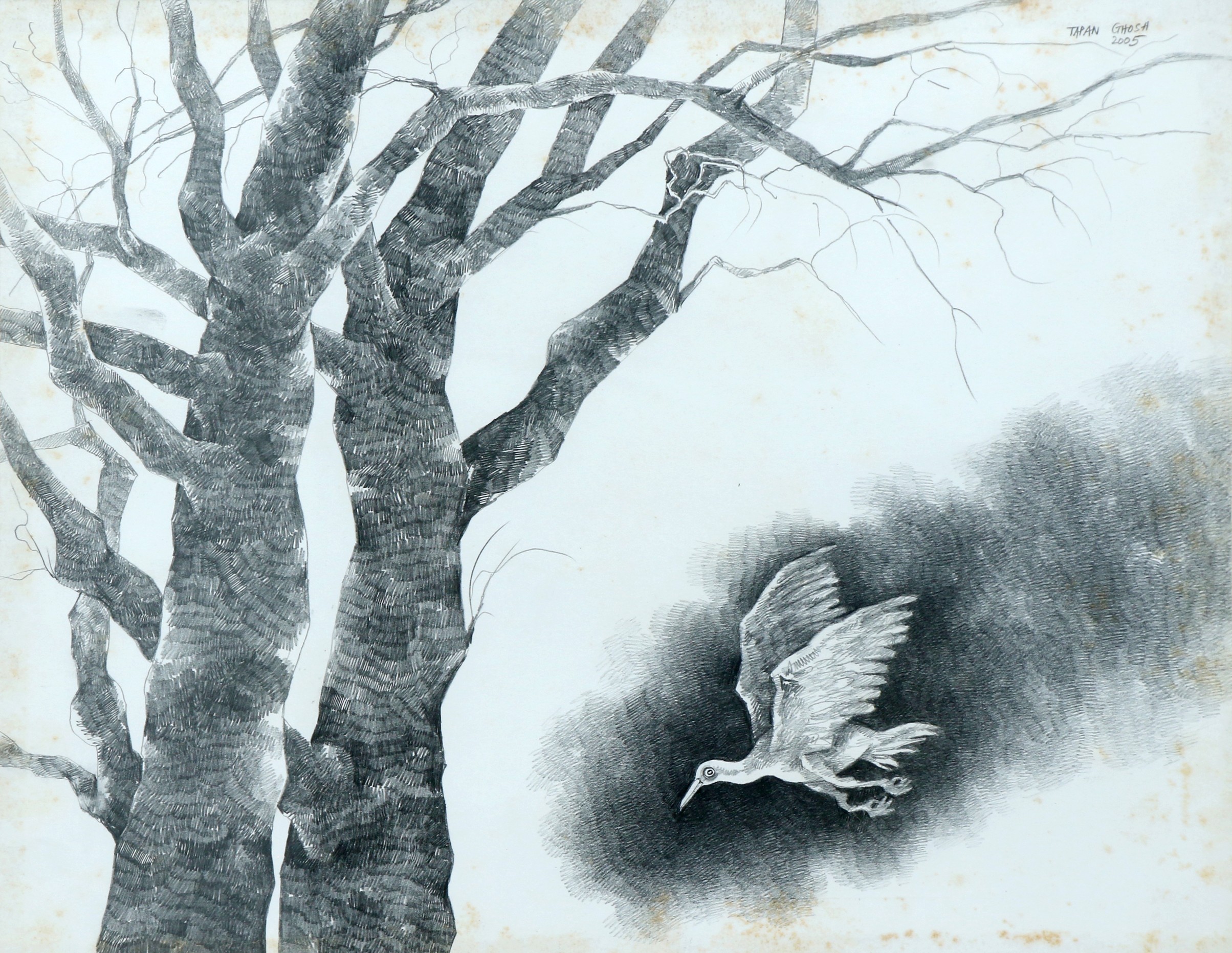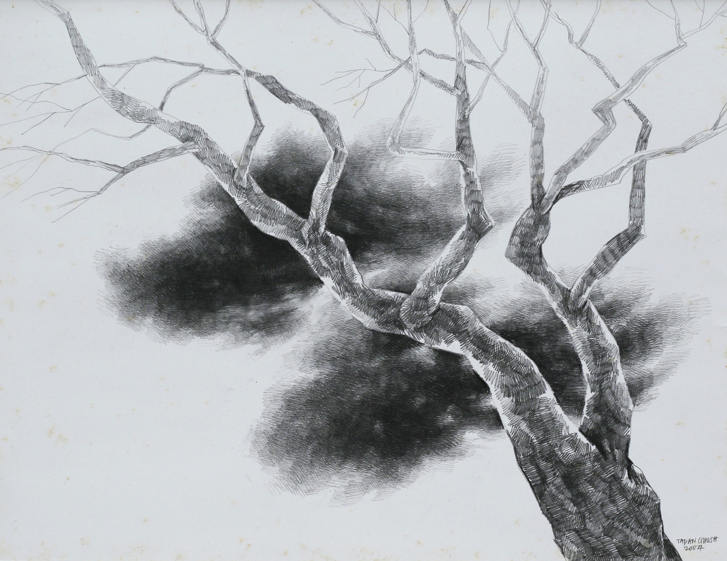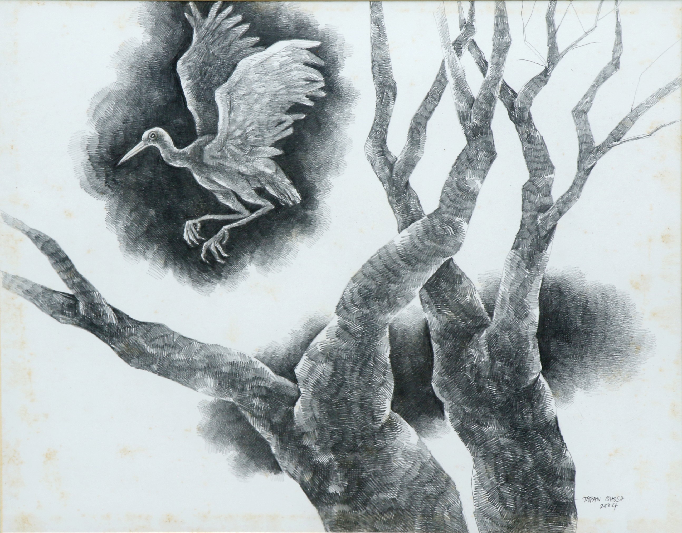 Tapan Ghosh was born in Kolkata, 1943. And he was graduated from Govt. College of Art & Craft, Kolkata. He studied modern printmaking (Graphics) at Atelier 17 in Paris, under the guidance of English painter Stanley William Hayter and Indian artist Krishna Reddy. Atelier 17 was renowned for its innovative approaches to printmaking, and Ghosh's time there influenced his artistic practice significantly. Additionally, he studied Art-monumental (fresco) at the Cole Nationale Supérieure des Beaux-Arts in Paris ( National School of Fine Arts in Paris.), under the esteemed Professor Bertholle. This experience expanded Ghosh's range to include fresco techniques, enriching his understanding of monumental art forms. These formative experiences in Paris played a crucial role in shaping his career as an artist. Ghosh’s artworks exhibited in many art exhibitions and also featured in prestigious auctions and charitable organizations dedicated to promoting art and raising awareness about it. He received several National and International awards.